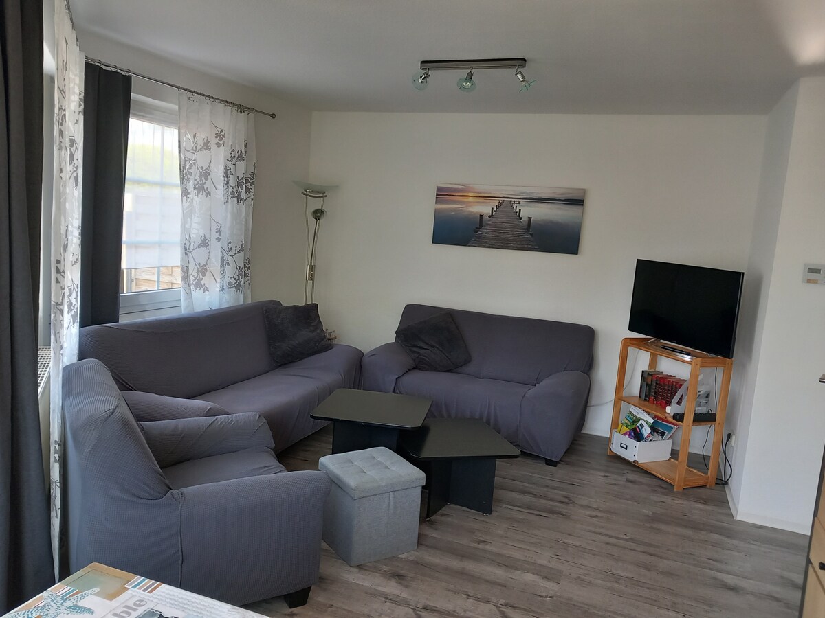 Qed nistennew bil-ħerqa li nilqgħuk fl-appartament żgħir tagħna! L-appartament ikopri madwar 45 pied kwadru. Fil-kamra tas-sodda hemm sodda doppja (140x200). Possibbiltajiet oħra ta 'rqad huma disponibbli bis-sufan sodda (180x200) fis-salott. L-appartament huwa disponibbli għalik biss. Bħala hosts, aħna ngħixu fil-bini ewlieni ħdejn u nkunu disponibbli biex inwieġbu kwalunkwe mistoqsija li jista 'jkollok, kemm wiċċ imb wiċċ kif ukoll bit-telefown. Il-parkeġġ jinsab eżatt quddiem l-appartament.