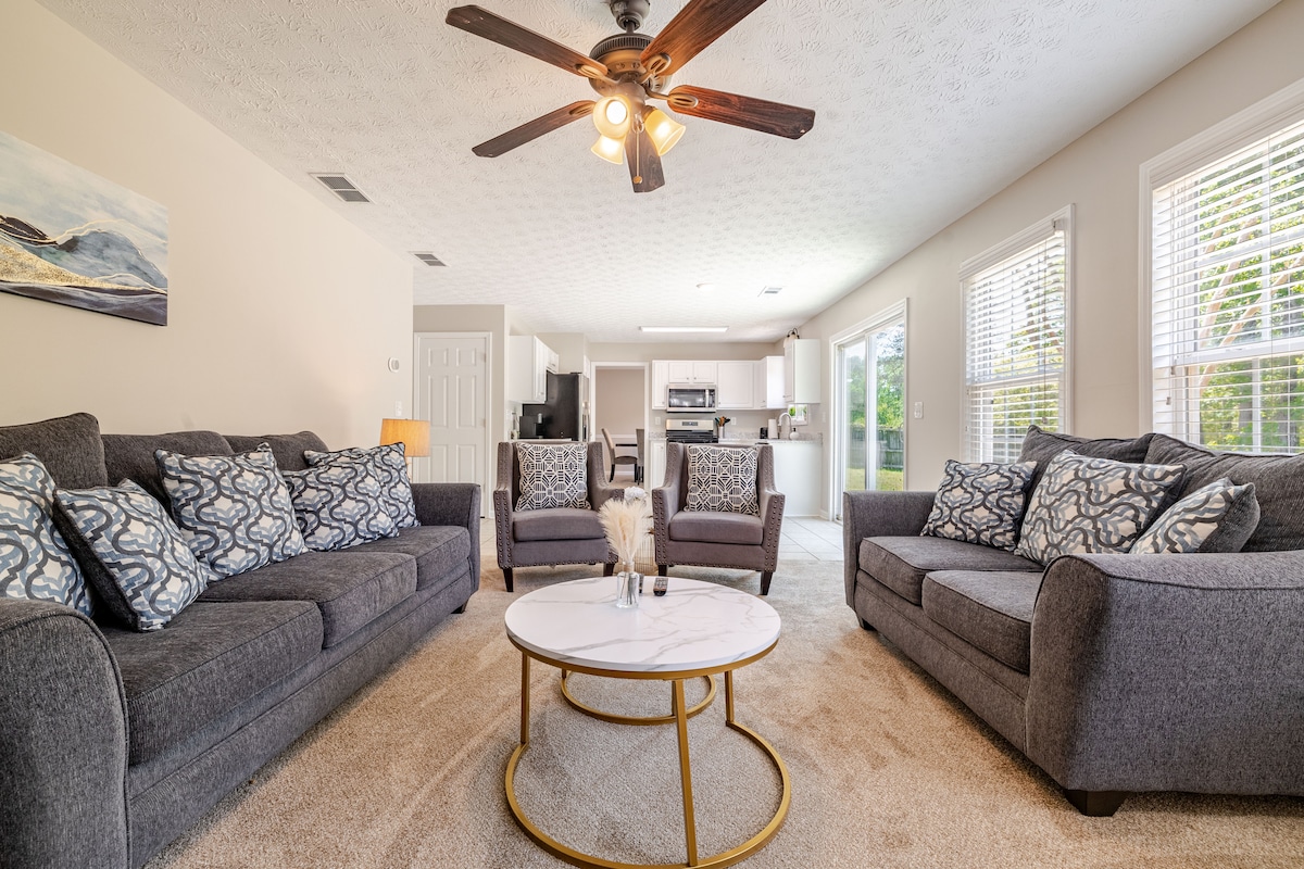 Merħba fil-vaganza rinnovata sabiħa tiegħek ġewwa Lawrenceville, GA! Aġġornata f' Lulju 2025, din id-dar spazjuża ta' 1,900 pied kwadru għandha żebgħa friska, it-tieni kamra tal-banju sħiħa rinnovata u għamara tat-terrazzin ġdida fjamanta. Ftit 5 minuti 'l bogħod miċ-Ċentru ta' Lawrenceville u sewqan qasir sa Atlanta, se tgawdi minn aċċess faċli għall-ikel, ix-xiri u d-divertiment filwaqt li tirrilassa fil-kumdità u l-istil.