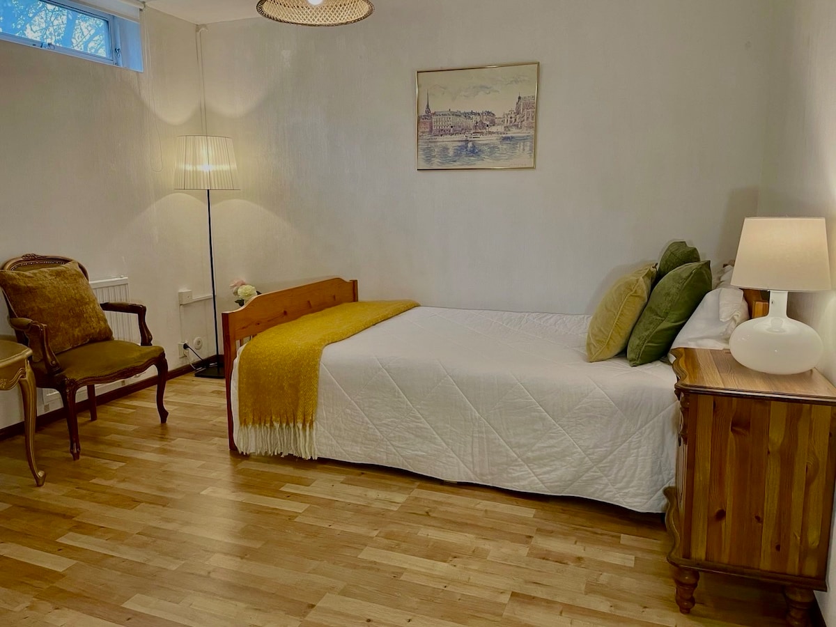Appartament fi studio ġdid u ppjanat sew b' daħla privata. L-appartament ta' 24 m² jinkludi kuritur, kamra tal-banju, gwardarobba, żona tal-ikel u kċina żgħira. Ftit barra mid-daħla se ssib terrazzin privat li jħares lejn in-Nofsinhar. Se nagħtuk sodda sħiħa żejda meta tibbukkja għal 3 klijenti. L-appartament jinsab fiċ-ċentru, 7 minuti bil-ferrovija 'l bogħod miċ-Ċentru ta' Stokkolma u' l bogħod bil-mixi sa Arenastaden u Mall tal-Iskandinavja. Aċċess faċli bil-karozza b' parkeġġ bit-triq bil-ħlas disponibbli.