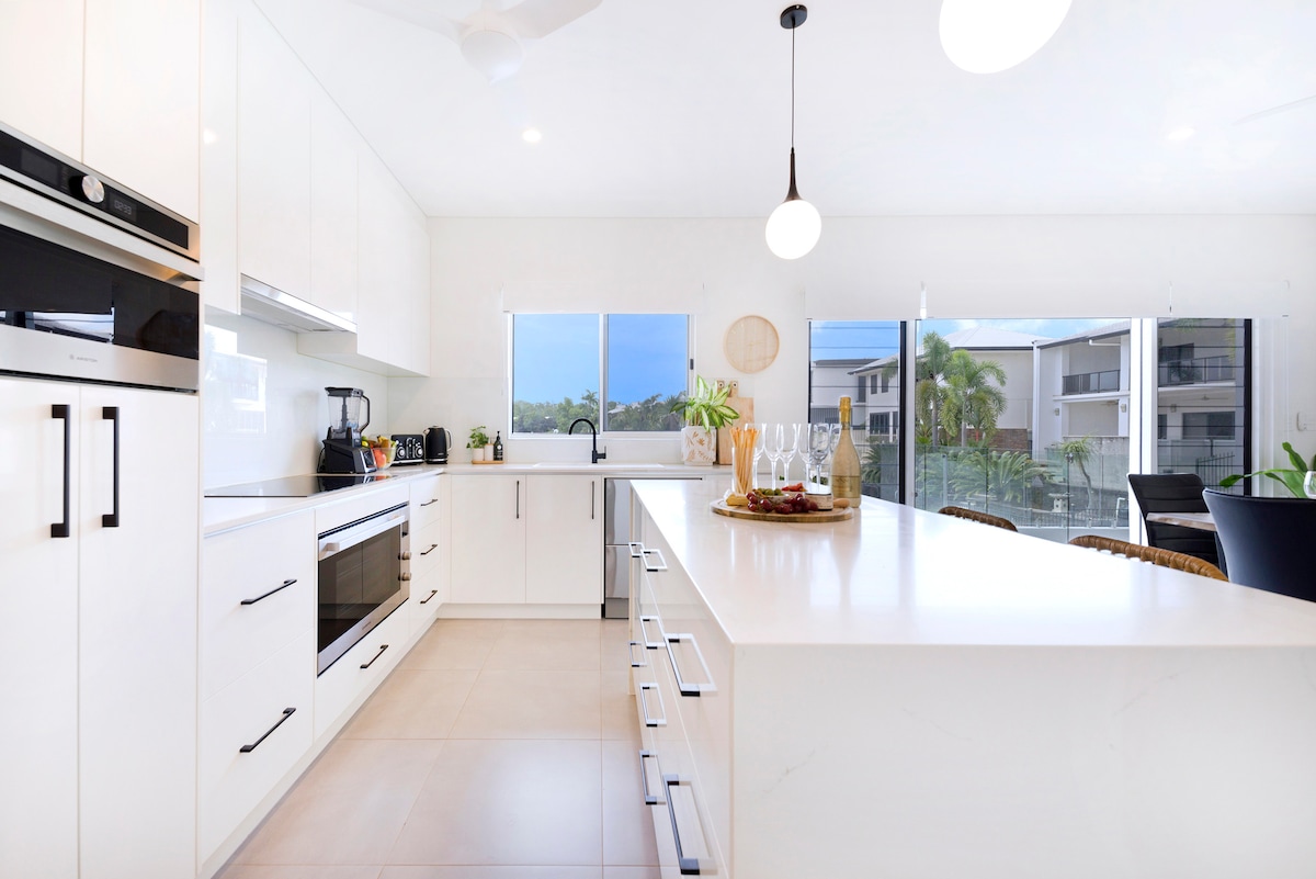 Townhouse spazjuża b'4 ikmamar tas-sodda f'żona tropikali kwieta ta' The Gardens, ftit minuti 'l bogħod miż-żona kummerċjali ta' Darwin, perfetta għall-familji, vjaġġi mal-ħbieb u gruppi ta' xogħol. Tista' torqod 9-il persuna fil-kmamar tas-sodda (kamra tas-sodda prinċipali b'sodda king u kamra tal-banju privata) u hemm ukoll salott, sodda li tista' tintuża bħala sufan u sodda li tista' tintlewa biex b'kollox ikun hemm post għal 11-il persuna. Bitħa privata magħluqa bi spa + BBQ tal-gass, parkeġġ sigur bil-gate awtomatiku/lock-up (flimkien ma' parkeġġ fit-triq b'xejn), Wi-Fi veloċi, TV kbir u spazju apposta fejn tista' taħdem. Il-pets huma milqugħa bl-approvazzjoni. Qrib Mindil Markets, il-Ġnien Botaniku u l-Faċċata tal-Ilma.
