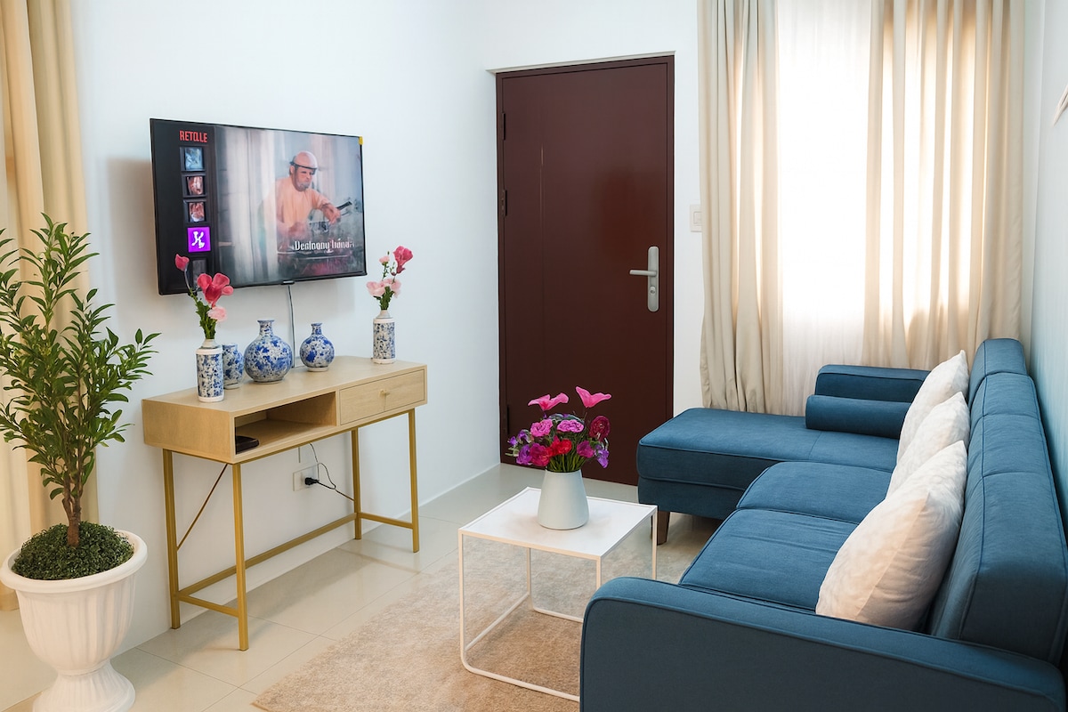 Gawdi esperjenza eleganti f' dan il-post li jinsab fiċ-ċentru. B' dehra ta' miljun dollaru, iżda bi prezz raġonevoli, mhux se tkisser il-bank tiegħek. 3 minuti biss sewqan sal-Belt ta' SM. Qrib S&R, PWC, MTS, Ateneo, 3.5 km 'il bogħod minn Ateneo University Roxas (suq tal-lejl), 4 km' il bogħod minn abreeza, ċentru kummerċjali ta' Gaisano. Appartament kondominjali kompletament mgħammar b' 2BR -żammu tajbin u sanitizzati regolarment - tista' ssajjar bi kċina sħiħa -b' doċċa sħuna/kiesħa -magna tal-ħasil -3-4 xugamani -internet bil-fibra unli -NETFLIX/youtube -Ilma tax-xorb bla ħlas -Kitt bla ħlas għall-klijenti