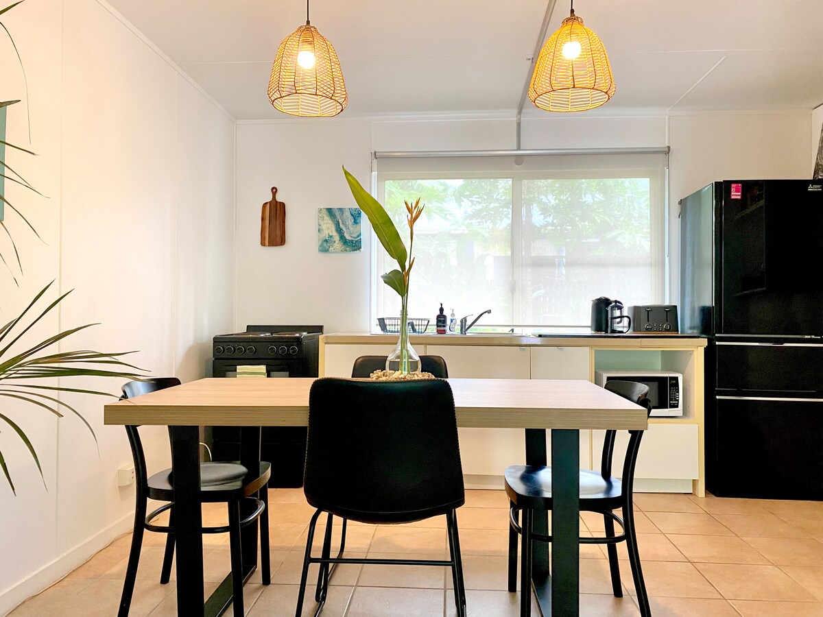 Stenna sakemm ix-xemx tifxek fuq il-pixxina u tisma' l-għasafar jkantaw f'dan l-appartament żgħir mimli dawl. Imtarra' qalb is-siġar tal-palm, l-ispazju jħossu mimli dawl, arja friska u privatezza komda - post tropikali fejn tistrieħ. Jinsab f'Railway Estate, post mimli siġar, u tinsab ftit passi 'l bogħod mill-Istadjum QCB u inqas minn 10 minuti bil-karozza 'l bogħod mill-belt u Strand. L-appartament sħiħ huwa tiegħek, b'aċċess privat, wifi, kċina mgħammra sew, żona tal-għajxien b'netflix, kamra tas-sodda queen u ensuite b'xaver tax-xita u magna tal-ħasil.