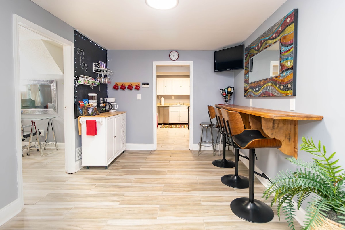 Id-dar tal-ġarr maqtugħa ta '600 pied kwadru tagħna tinsab f' dar kompletament privata magħluqa fil-viċinat ta' Decatur tant imfittex ta' Atlanta. Tleqq. Nadif. Kwiet. Siġar barra minn kull tieqa. Se tħossok rilassat u d-dar. Is-sodda ta 'daqs queen għandha sistema sħiħa ta' friex Casper li tinkludi s-saqqu Casper, il-pjattaforma Casper u l-imħaded Casper. Il-bjankerija tas-sodda tinkludi wkoll Peacock Alley 100% folji tal-qoton u kopertura tad-duvet ta 'Brooklinen. Sufan lussuż joħroġ f 'sodda doppja' queen'. Kamra tal-banju kompluta b 'doċċa li toqgħod bilwieqfa fuqha. Sistema ġdida ta 'tisħin u tkessiħ fjamanta b' kontroll mill-bogħod biex tagħti lill-klijenti kontroll sħiħ fuq it-temperatura. Wi-Fi b 'veloċità għolja. Roku TV b 'Hulu, Netflix u Amazon Prime TV mingħajr kummerċjali. It-televiżjoni testendi mill-ħajt biex taraha ideali minn kullimkien fil-kamra. Vinyl record player b 'rekords minn diversi perjodi u Amazon Echo għall-mużika. Siġġu tal-qari mar-rivisti. Kċina żgħira mgħammra b 'kollox bil-qsari, it-twaġen, il-platti u l-aċċessorji kollha meħtieġa biex issajjar ikla sħiħa. Mejda għal tnejn li jistgħu jintużaw ukoll bħala żona tax-xogħol. Karrettun tal-kafè separat b 'magna tal-kafè u l-aqwa kafè lokali mitħun frisk u tejiet premium flimkien ma' microwave. Friġġ sħiħ. Spazju għall-armarju biex iddendel il-ħwejjeġ kollha tiegħek. Sider kbir ta 'kxaxen. Mera b 'tul sħiħ. Xtilliera tal-bagalji għall-bagalja. Lożor, kutri u mħaded żejda għas-sufan li jinġibed 'il barra. Post wieħed apposta għall-parkeġġ off-street fid-driveway. Ħafna iktar parkeġġ bla ħlas fit-triq blokka waħda biss 'il bogħod. Il-host tiegħek se jkun fil-propjetà u se jkun disponibbli għal dak kollu li għandek bżonn matul iż-żjara tiegħek, għalhekk jekk jogħġbok tiddejjaqx tistaqsi. Sadanittant, aħna napprezzaw il-privatezza sħiħa tiegħek. Id-dar tipprovdi post mill-aqwa biex tesplora kemm Decatur kif ukoll Atlanta. Hemm ħafna ristoranti u ħwienet mill-aqwa fiż-żona biex tgawdi u l-istazzjon tal-ferrovija MARTA huwa blokk wieħed 'il bogħod li jipprovdi aċċess dirett għaċ-ċentru ta' Atlanta. Id-dar tal-ġarr tagħna hija wkoll blokka waħda 'l bogħod mill-ferrovija MARTA b' linja diretta lejn iċ-Ċentru ta' Atlanta għal kull min iżur Atlanta u jqatta' l-biċċa l-kbira tal-ħin tiegħu fiċ-ċentru tal-belt. Insa t-traffiku u l-ħlas għall-parkeġġ. Oqgħod f 'Decatur u minflok ħu r-rikba bil-ferrovija ta' 15-il minuta fiċ-ċentru tal-belt.