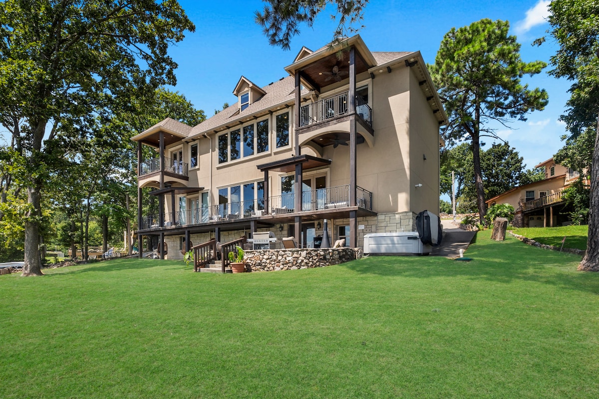Irrilassa fil-kabina faċċata tal-lag tagħna li ma tagħmilx ħsara lill-familja. Spazju tal-għajxien nadif u funzjonali. Gverta kbira b 'veduti sbieħ tal-Grand Lake. Aċċess faċċata tax-xatt bit-taraġ. Gawdi x-xemx u nżul ix-xemx fuq il-gverta jew fil-kamra tax-xemx. Il-kċina mgħammra b 'dak kollu li għandek bżonn. Bjankerija, xugamani u prodotti tal-indafa personali żejda pprovduti. Grill tal-gass fuq il-gverta ta 'fuq. Sewqan ta '10 minuti biss lejn Grove, OK. Jekk jogħġbok żomm f' moħħok li hemm diversi taraġ biex tasal sal-kabina nnifisha (huwa kif niksbu veduta daqshekk sabiħa:).