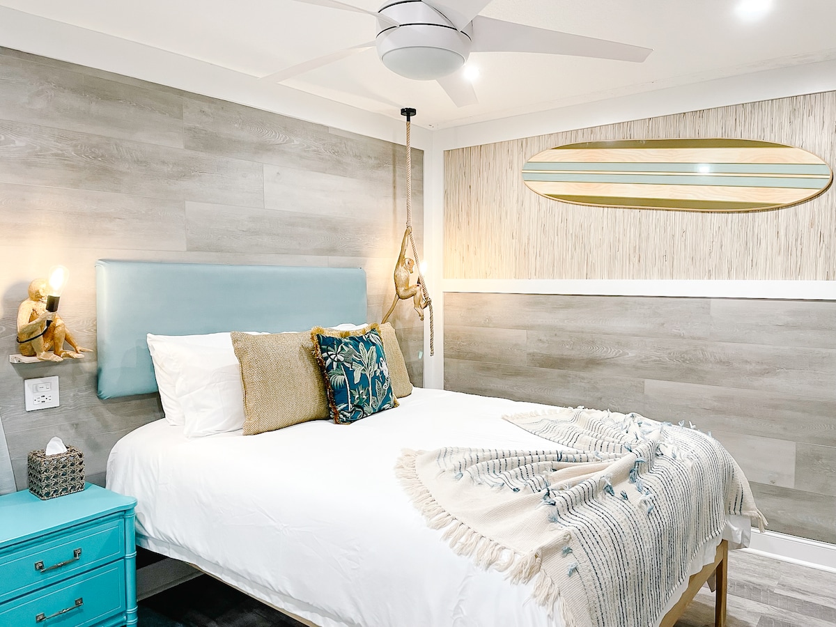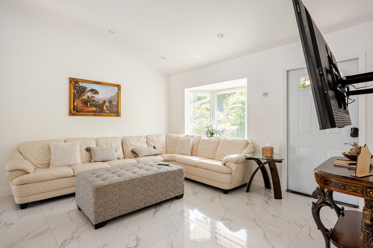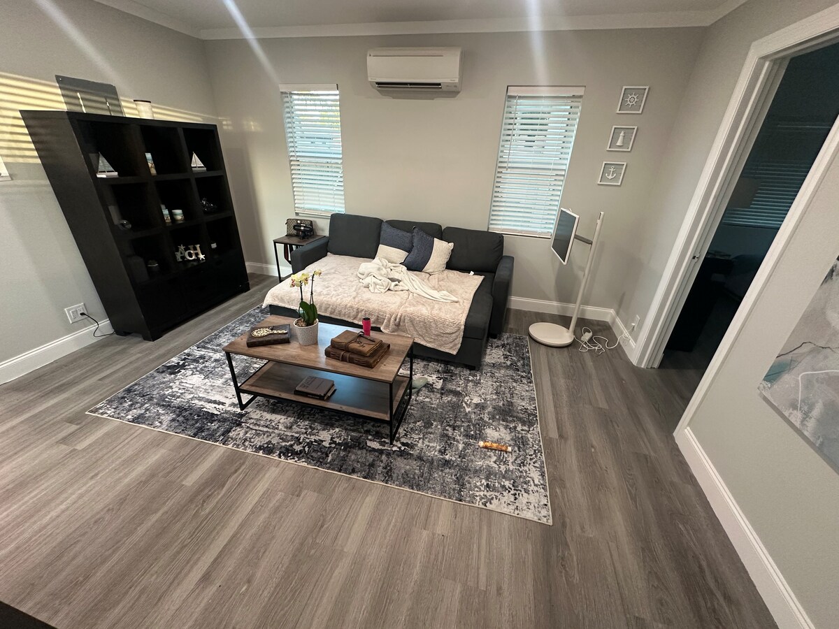 Mango Groves Beach Bungalow! Perla tropikali mill-isbaħ moħbija f' nofs il-Bajja artistika ta' Lake Worth. Għadu kif ġie aġġornat, din il-kamra tal-banju waħda immakulata hija mdawla, spazjuża u komda ħafna b' bitħa kbira sabiħa u terrazzin privat. 20 minuta mixi jew 10 minuti mixi bir-rota sal-bajja. Gawdi għadd kbir ta 'ikel mill-isbaħ u nightlife kollha ftit passi' l bogħod. Użu bla ħlas tal-grill, fire pit, cruisers qrib il-bajja, ħasil tal-ħwejjeġ, ġugarelli, tagħmir tal-bajja, logħob u affarijiet tat-trabi! Il-missjoni tagħna hija li nipprovdulek esperjenza perfetta ta' 5 stilel!