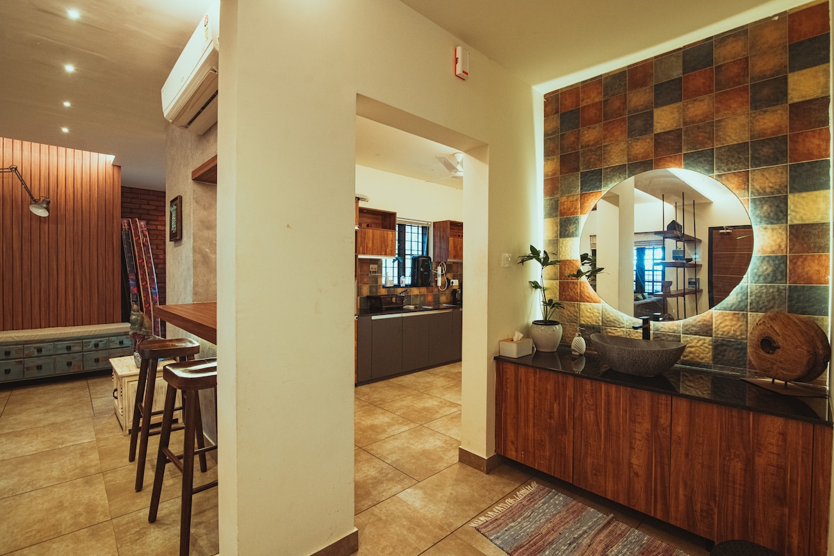 Merħba fid-Dar 5BR mill-isbaħ tagħna li tinsab fil-qalba vibranti tal-belt ta' Thrissur! L-ISPAZJU: Hemm tliet ikmamar tas-sodda kompletament ikkundizzjonati bl-arja. 5BR għandha kmamar tal-ħasil imwaħħla magħha. Il-faċilità tal-misħun tinsab hemm fi 3 Kmamar tal-banju. Massimu ta' 4 karozzi jistgħu jiġu pparkjati ġewwa l-faċilità. Kull kamra tas-sodda u salott għandhom terrazzin/gallariji mwaħħla magħhom. 2 kċejjen b' kumditajiet moderni u ħażna spazjuża. Kmamar tas-sodda mwaħħla ma' gwardarobbi spazjużi mibnija fihom. Din id-dar għandha politika stretta ħafna dwar l-iskart.