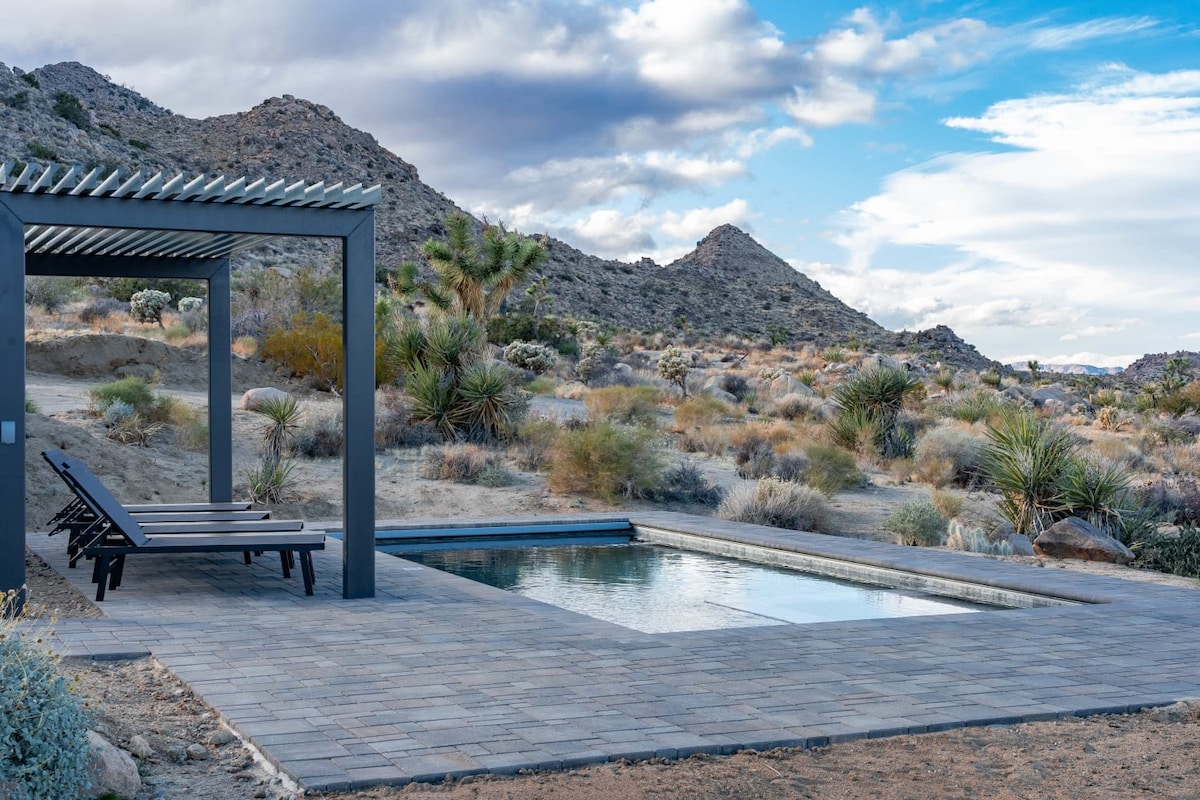 Welcome to Shadow House, located within the serene Solace Retreat - a private 10-acre sanctuary in Joshua Tree. Surrounded by sweeping desert views, Shadow House invites you to embrace outdoor living at its finest. Enjoy peaceful mornings on the deck, afternoons lounging by the built-in hot tub or cowboy tub soaking pool, and evenings by the fire pit under a starlit sky. Whether you seek reflection, connection, or simply the calm of nature, Shadow House offers a truly transformative experience.