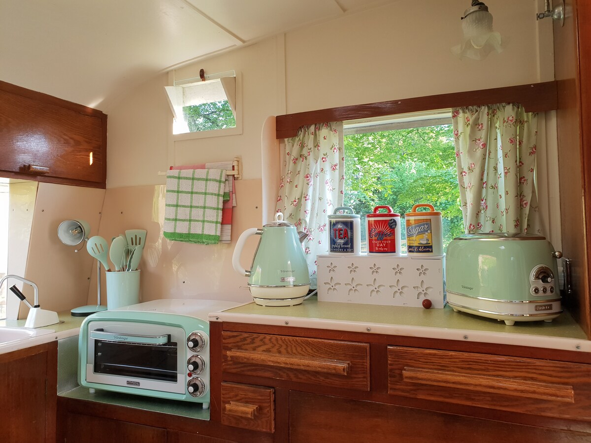 Karavan oriġinali tas-snin ħamsinijiet stabbilit fil-ġnien privat tiegħu biss 2 mili 'l bogħod mill-kosta fir-raħal kwiet ta' Cranford. Il-karavan ġie restawrat filwaqt li baqa 'leali għall-istil u d-dekor tas-snin 50. Il-karavan fih sodda doppja żgħira li tista 'tintlewa' l bogħod biex toħloq żona tal-ikel kif ukoll żona tal-kċina u sink. Se jkollok ukoll il-kamra tad-doċċa/tojlit privata tiegħek li tinsab f 'bini ta' barra maġenbha. Iż-żjara se tinkludi croissants,Ħobż,ħalib,butir,ġamm u ċereali.
