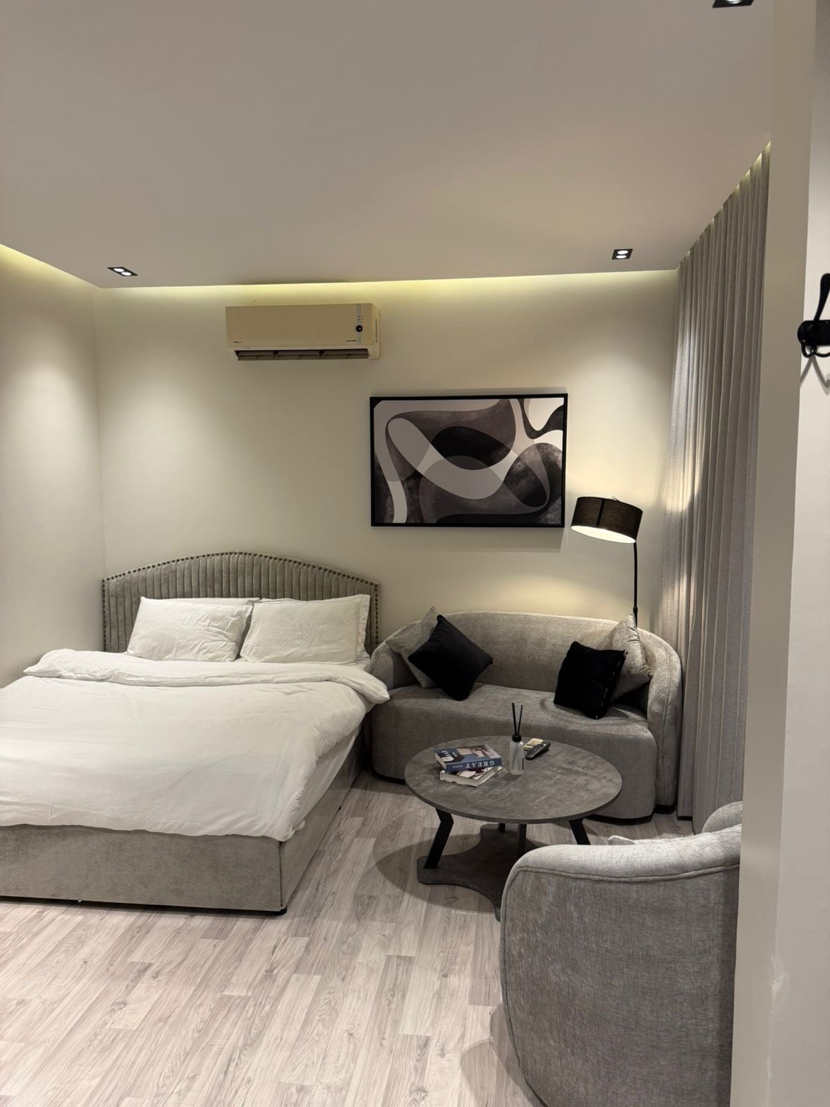 Studio kwiet u eleganti b' self checkin, magħmul minn sodda ewlenija, żona bilqiegħda fil-ġenb u TV intelliġenti, flimkien ma' rokna tal-kafè biex tagħmel kafè u te, kitla u microwave, u kamra tal-banju kompluta b' prodotti tal-indafa personali. Dan l-istudio jinsab strateġikament fit-Tramuntana ta' Riyadh u hemm is-servizzi u l-avvenimenti kollha fil-qrib. M' hemm l-ebda Wi-Fi Il-Boulevard ta' Riyadh jinsab 5 minuti 'l bogħod Walnder Gunn 8 minuti , L-ajruport huwa 18-il minuta 'l bogħod
