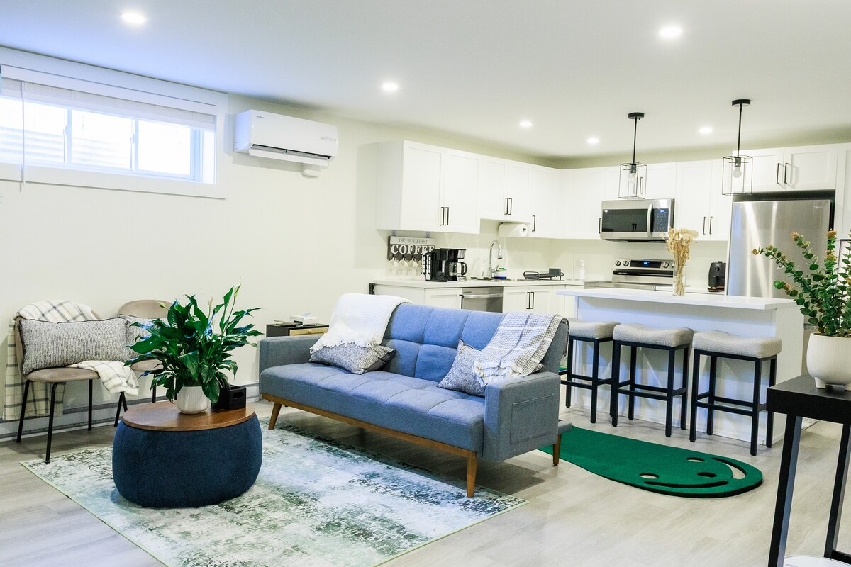 Merħba fis-Suite ta' Kantina b' Kamra tas-Sodda waħda komda tagħna li tinsab f' Viċinat kwiet f' Moncton, dan l-ispazju mill-isbaħ joffri vaganza perfetta għal vjaġġaturi waħedhom jew koppji. L-ispazju Għandha daħla privata, sodda queen size komda, kamra tal-banju sħiħa, kċina żgħira, Wi-Fi u parkeġġ bla ħlas. Aċċess malajr u faċli għall-ajruport, għat-trasport pubbliku, għall-parks, għall-ħwienet u għar-ristoranti. Postijiet popolari madwar: Ajruport - 7 minuti Ċentru kummerċjali Champlain - 7 minuti Walmart - 7 minuti Superstore - 8 minuti