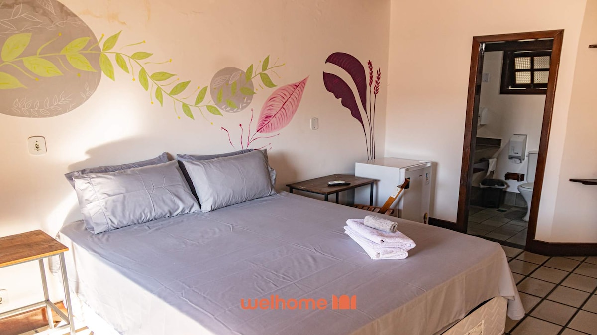 Abrace a simplicidade neste lugar. Suíte segura, aconchegante, com ar condicionado, Wi-Fi, chuveiro elétrico, cama e travesseiros bons. O quarto fica escuro e sem insetos. É localizado em TRANCOSO, no centro, numa via transversal a avenida principal, um parcial movimento durante o dia, fica no 1 andar de um prédio comercial no térreo que possui uma padaria/café artesanal, uma casa de bolos, e uma açaíteria e lanchonete. Hortifruti e distribuidora em frente; mercado, farmácia e Academia 150m.