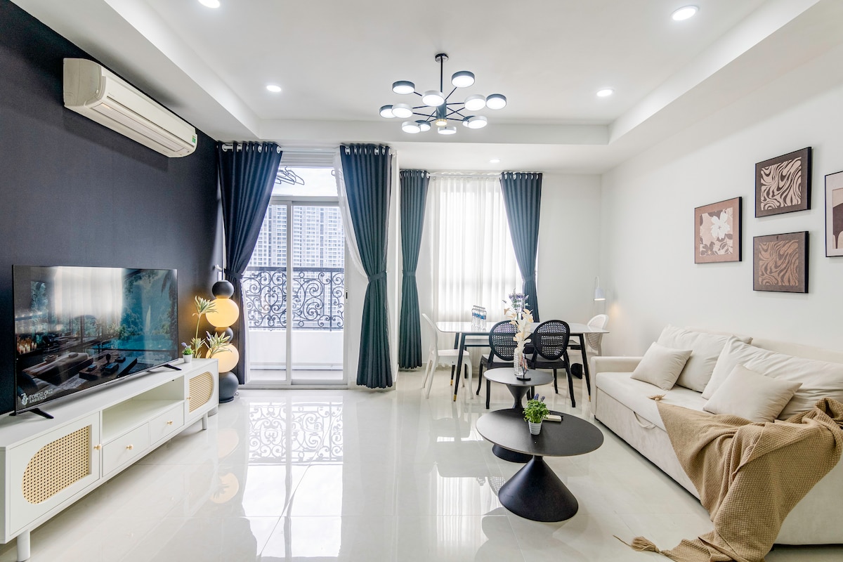 Appartament modern b '2 ikmamar tas-sodda b' veduta mill-isbaħ tax-xmara jew għal individwi, familji jew gruppi. Fi żmien 50 metru, tista 'faċilment timxi lejn Lotte Cinema fi TNL Plaza, Starbucks, Supermarket, eċċ. Aħna noffru servizz mill-aqwa b 'dak kollu li għandek bżonn għall-vjaġġ tiegħek bħal: - 5 minuti lejn id-Distrett 1, 2,3,5,7,8. -2 kmamar tas-sodda b '2 ikmamar tal-banju. -Kċina mgħammra b 'kollox. -3 Kundizzjonaturi tal-arja -Magna tal-ħasil ufriġġ, kitla veloċi li tgħalli. -Wifi u TV ta '43 pulzier TCL bi skrin ċatt. -Shampoo, xugamani, hair dryer, eċċ.