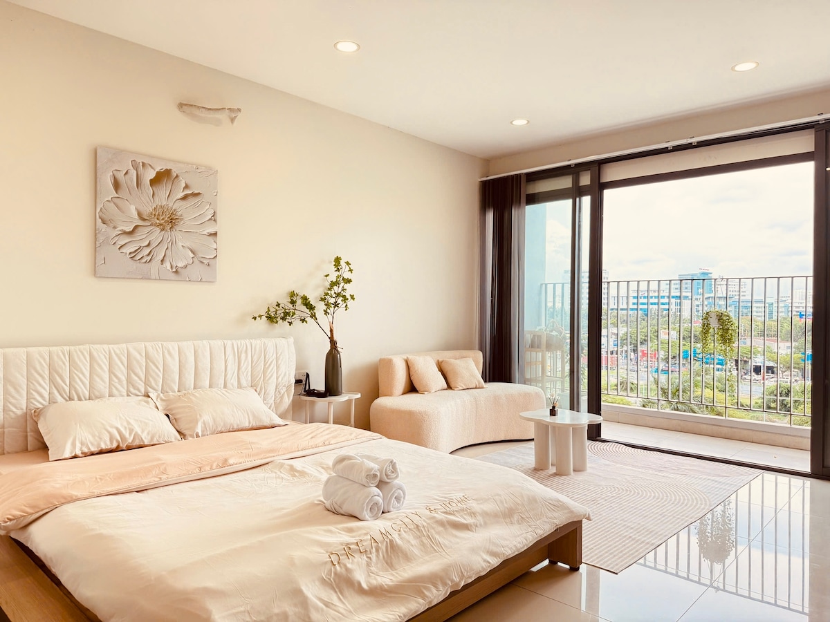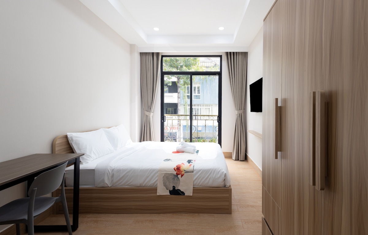 Studjo b'gallarija ċara fi stil Skandinavu ġewwa Lavida Plus, District 7, ftit minuti biss 'il bogħod minn Phu My Hung, RMIT, SECC u Crescent Mall. Ideali għall-koppji, vjaġġaturi waħedhom jew klijenti li jivvjaġġaw fuq xogħol li qed ifittxu post nadif, komdu u mgħammar b'kollox fl-iktar viċinat kwiet ta' Saigon. L-istudio, li ġie mfassal apposta kemm għal żjarat qosra kif ukoll għal żjarat fit-tul, joffri kumdità moderna, dawl naturali u dak kollu li teħtieġ biex tħossok komdu Noffru wkoll tindif bla ħlas f'nofs iż-żjara għal żjarat itwal minn 7 iljieli 💚