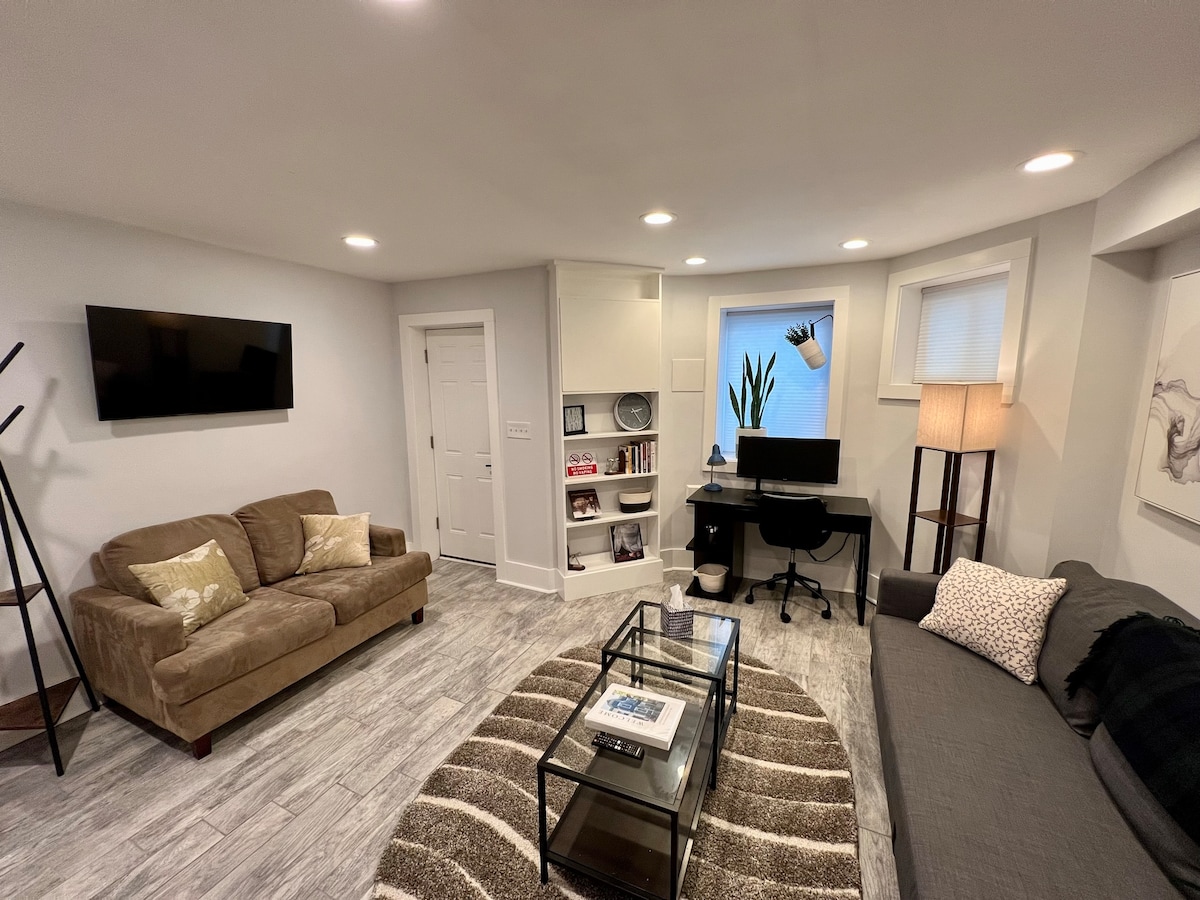 Ilgħab b' mod iebes fil-belt imbagħad iftaħ l-appartament modern "Crestwood Oasis" ħdejn Rock Creek Park u ftit passi 'l bogħod mill-Kosta ta' Gold ta' DC. L-appartament awto-inkorporat b 'daħla privata għandu art travertin sabiħa, kċina mgħammra b' kollox b 'affarijiet żejda bħal juicer u anke mixer ta' Kitchenaid. Is-salott imżejna b' mod sabiħ għandu sufan irqad ta' daqs sħiħ u Smart TV fejn tista' tara l-ispettakli favoriti kollha tiegħek filwaqt li l-kamra tas-sbuħija għandha sodda qies queen.