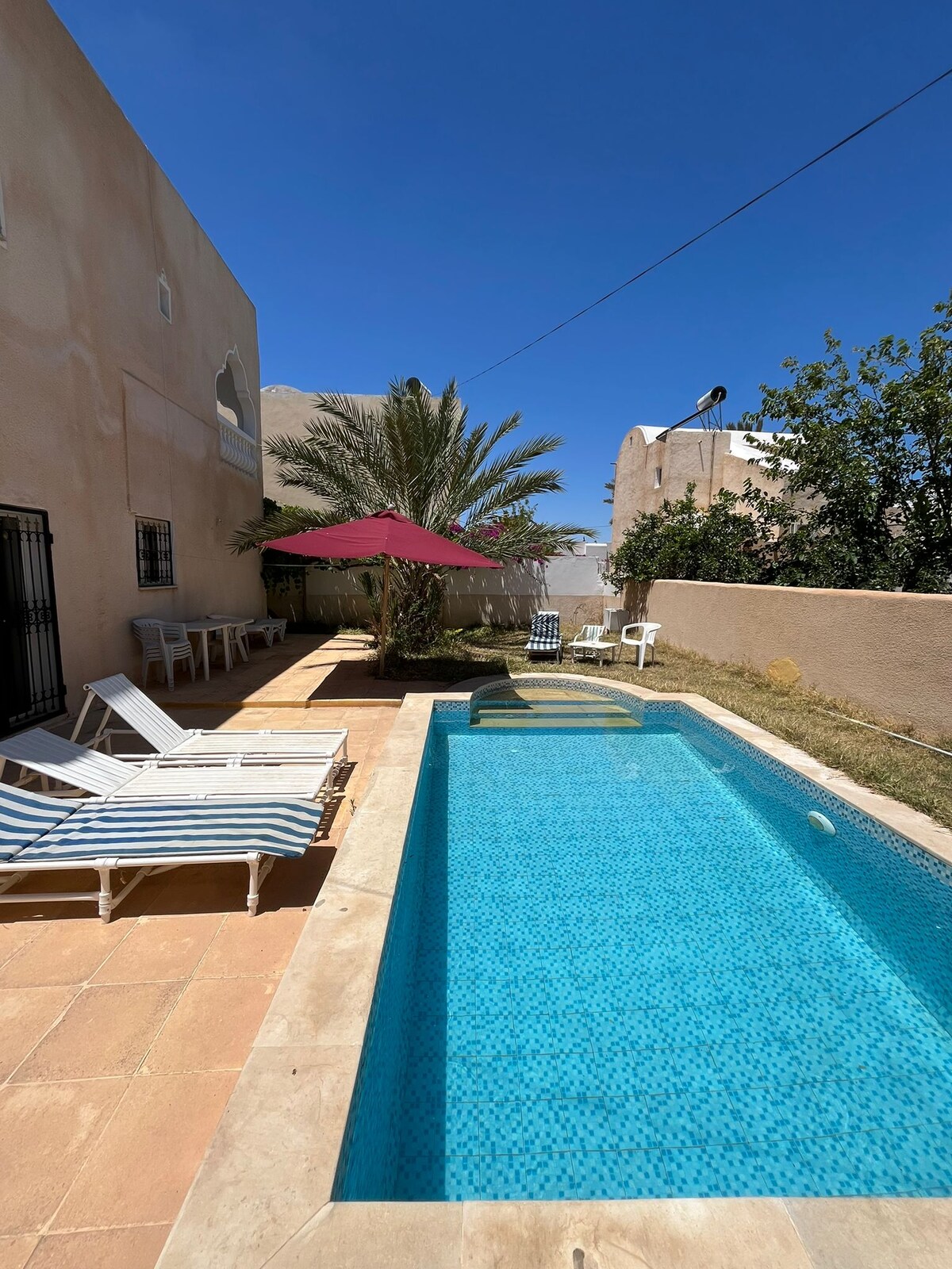 Ġdid fil-Gżira ta' Djerba ❣️ IL-KOLAZZJON HUWA INKLUŻ:) Jinsab fil-belt ta' Midoun u biss: - 5 minuti bil-karozza mill-baħar - 10 minuti sewqan minn Djerba Golf Din il-villa eċċezzjonali tgħaqqad b' mod subtili l-arkitettura tradizzjonali Tuneżina u d-disinn modern. Dan jikkonsisti fi 3 suites eleganti, kull waħda bil-kamra tal-banju en-suite tagħha, kamra tal-ikel amikevoli, kċina mgħammra b' kollox u saqaf mill-isbaħ biex tħares lejn inżul ix-xemx.