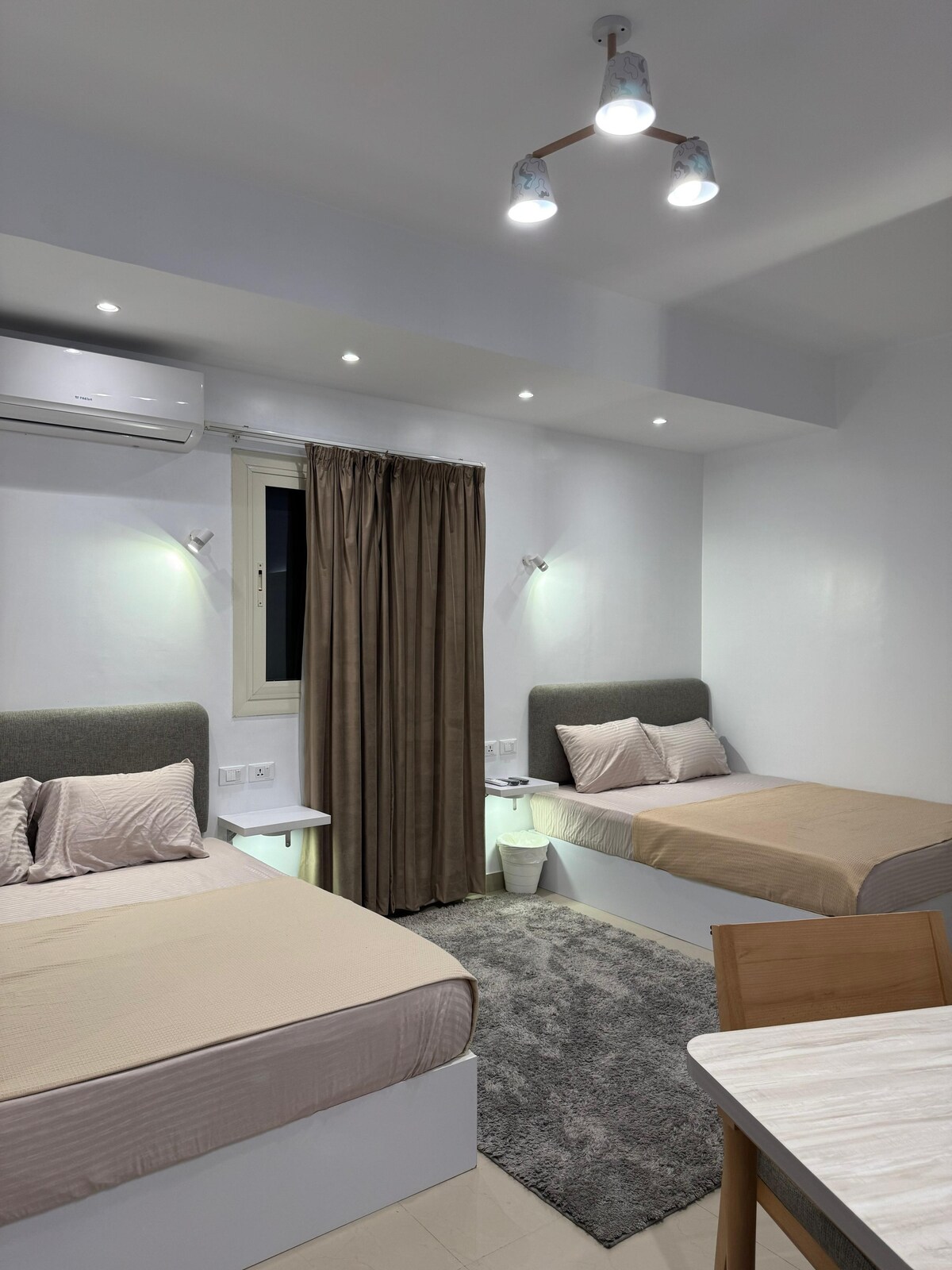 Skopri l-appartament mill-isbaħ tagħna b' 2 ikmamar tas-sodda fil-qalba tal-Kajr, li joffri veduta panoramika miftuħa tan-Nil u ħafna punti ta' interess ikoniċi b' interjuri rilassanti u spazju wiesa'. Kemm jekk qed tesplora l-mużewijiet, qed timxi tul in-Nil, jew qed tgawdi s-swieq lokali vibranti, dan l-appartament se jkun id-dar perfetta tiegħek għal esperjenza li ma tinsiex fil-Kajr.