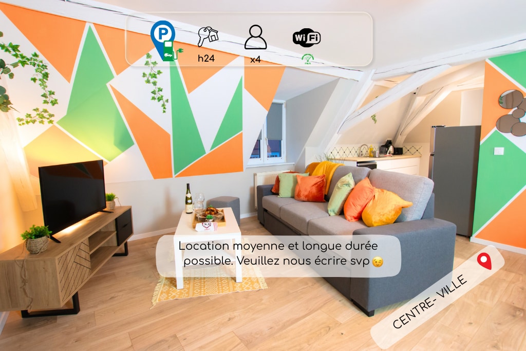 Dan l-appartament sabiħ ta '55m2 kompletament rinnovat fi spirtu ta' koppunazzjoni jinsab idealment fiċ-ċentru tal-belt ta 'Molsheim, fil-bidu tar-Rotta tal-Inbid. Jekk trid terġa 'tingħaqad man-natura, tista' taċċessa diversi mogħdijiet tal-għelieqi tad-dwieli, foresti jew sempliċement mixjiet fuq il-mogħdijiet tar-roti. Fid-daħla tal-belt se ssib kumpless kbir ta 'logħob, ħwienet u ristoranti (bowling- ċinema-mini golf..) Molsheim huwa l-bilanċ bejn in-natura u l-kultura.