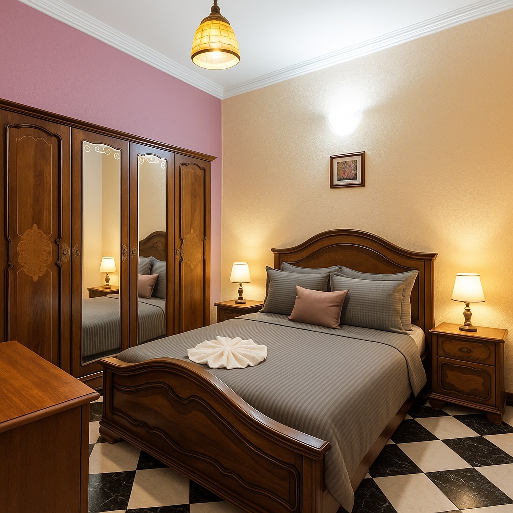 Idħol fl-eleganza ta' appartament b' disinn awtentiku, fejn kull dettall jirrakkonta storja. Ftit minuti 'l bogħod mid-distrett vibranti ta' Gueliz, dan il-post joffri ambjent perfett biex tħallat l-esplorazzjoni u s-serħan il-moħħ. Is-salott, bid-dettalji tradizzjonali Marokkini tiegħu, jistiednek tirrilassa, filwaqt li l-kamra komda twiegħed iljieli paċifiċi f' atmosfera sħuna. Il-kċina, konvenjenti u mgħammra sew, tħallik tgawdi l-mumenti tiegħek b' mod indipendenti.