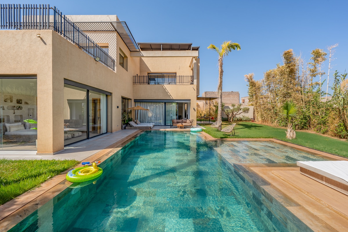 🌿 Villa Moderna Brand-New Marrakech | Veduti tal-Pool Privat, tal-Kok u tal-Atlas Din il-villa moderna, imnedija fuq Airbnb, toffri veduti mill-isbaħ tal-Muntanji Atlas, pixxina privata, ġnien mimli lussu u l-għażla ta' kok privat biex itejjeb iż-żjara tiegħek. Ideali għall-familji, għall-koppji jew għall-ħbieb, gawdi minn vaganza paċifika biss 35 minuta 'l bogħod miċ-ċentru tal-belt ta' Marrakech, b' aċċess faċli għal attrazzjonijiet lokali u esperjenzi mill-isbaħ.