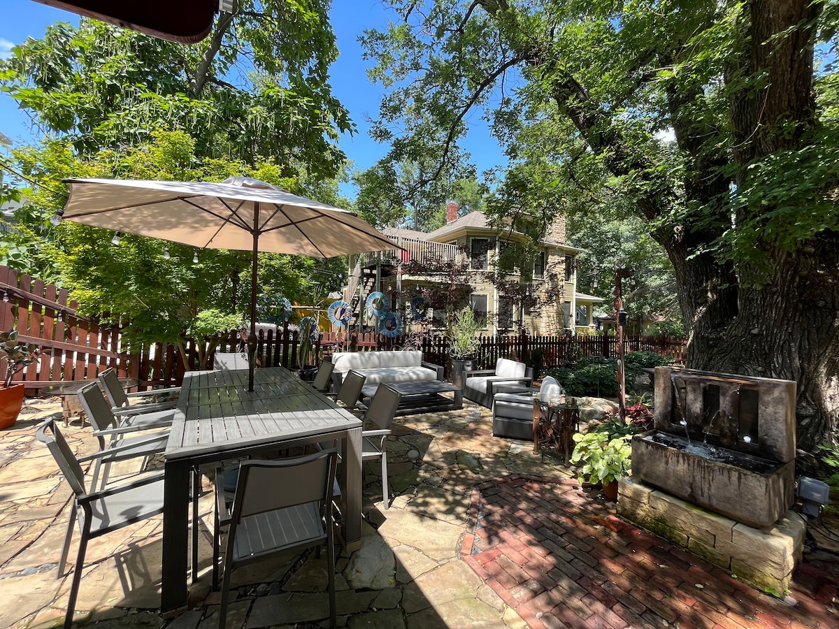 Merħba fil-post kennija tiegħek ġewwa Lawrence, blokka waħda biss 'il bogħod minn Massachusetts Street. Imxi lejn ristoranti popolari, ħwienet uniċi, ħajja ta' billejl, u avvenimenti KU. Ġewwa, gawdi minn studio mgħammar b'mod maħsub b'sodda queen, sufan li jinġibed ta' daqs sħiħ, u kċina mgħammra tajjeb. Irrilassa fil-hot tub tal-bini jew iġbor madwar il-fuklar ta' barra waqt li tħares lejn inżul ix-xemx sabiħ ta' Kansas.