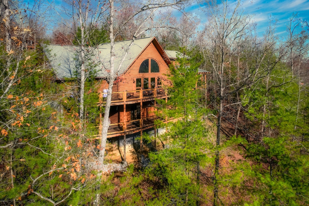 Beautiful Mountain Top Cabin w/ Fall Views, Private Hot Tub, Community Pool, 6.5 mi PF PWY, 15 mi Gatlinburg, 16.5 mi to SMNP! Large parking area. Spacious resort community w/ full amenities, well paved roads, and easy drive! Features: 2-level decks, floor to ceiling windows, gas fire place, 5 smart TVs, Super Fast Wi-Fi, pool table, arcade, BBQ grill (BYO Charcoal), outdoor dining, swing, private hot-tub, stocked kitchen, washer/dryer, everything needed for an unforgettable family vacation!