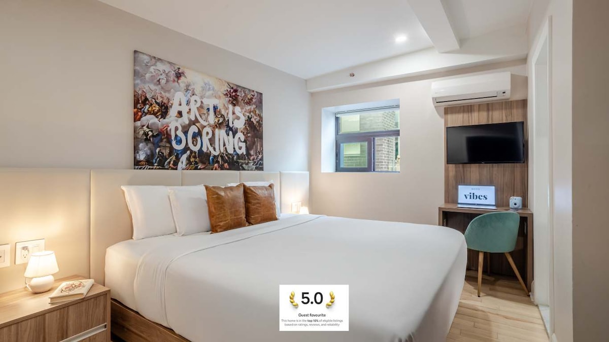 Idħol fir-ruħ ta' Montreal! Dan l-istudio mill-isbaħ ipoġġik minuta 'l bogħod minn ristoranti, kafetteriji u nightlife fil-viċinat l-iktar popolari tal-belt. Mixja sa Old Port (15-il minuta), Quartier des Spectacles (6 minuti) u divertiment bla tmiem. Il-kamp bażi perfett tiegħek ta' Montreal għandu sodda queen komda, AC, aċċess għal Netflix u daħla mingħajr ċavetta bla xkiel. Il-klijenti riċenti huma mgħaġġla: "Perla moħbija b' dan il-prezz!" & "Il-post fejn jinsab il-listing ma jistax jinqabeż!" Lest/a biex tħobb Montreal? Ibbukkja l-vaganza urbana tiegħek illum!