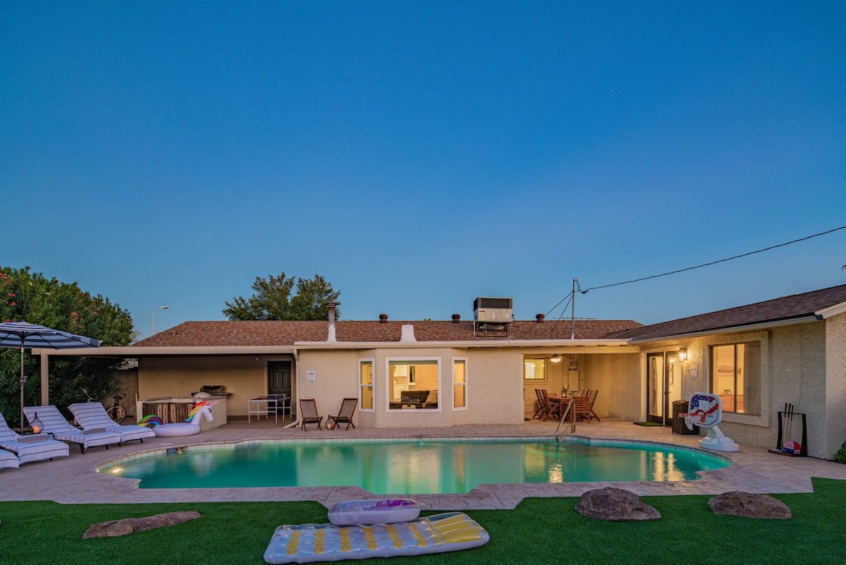 DAR ġdida! Marzu 2024! POOLIN IMSAĦĦAN BLA ĦLAS FIX-XITWA U HOT TUB + XOGĦOL TAT-TINDIF ŻERO! M 'GĦANDEKX TĦALLAS GĦAS-SĦANA TAL-POOL F' XI ĦADD TA' AIRBNB! - DAR ĠDIDA FJAMANTA sabiħa mibdula bi 3 ikmamar tas-sodda b' bitħa tal-istil tar-resort, ftit minuti 'l bogħod minn Old Town Scottsdale! Pixxina msaħħna b 'xejn, Hot Tub, Fire Pit, Mini Golf, Ping Pong, Giant Chess, + aktar veloċi wifi u smart tvs! Id-dar mgħammra b' bar tal-kafè komplementari, bbq fuq barra u l-iktar turf sabiħ għall-familja kollha li tista' tgawdi! CABLE TVS !