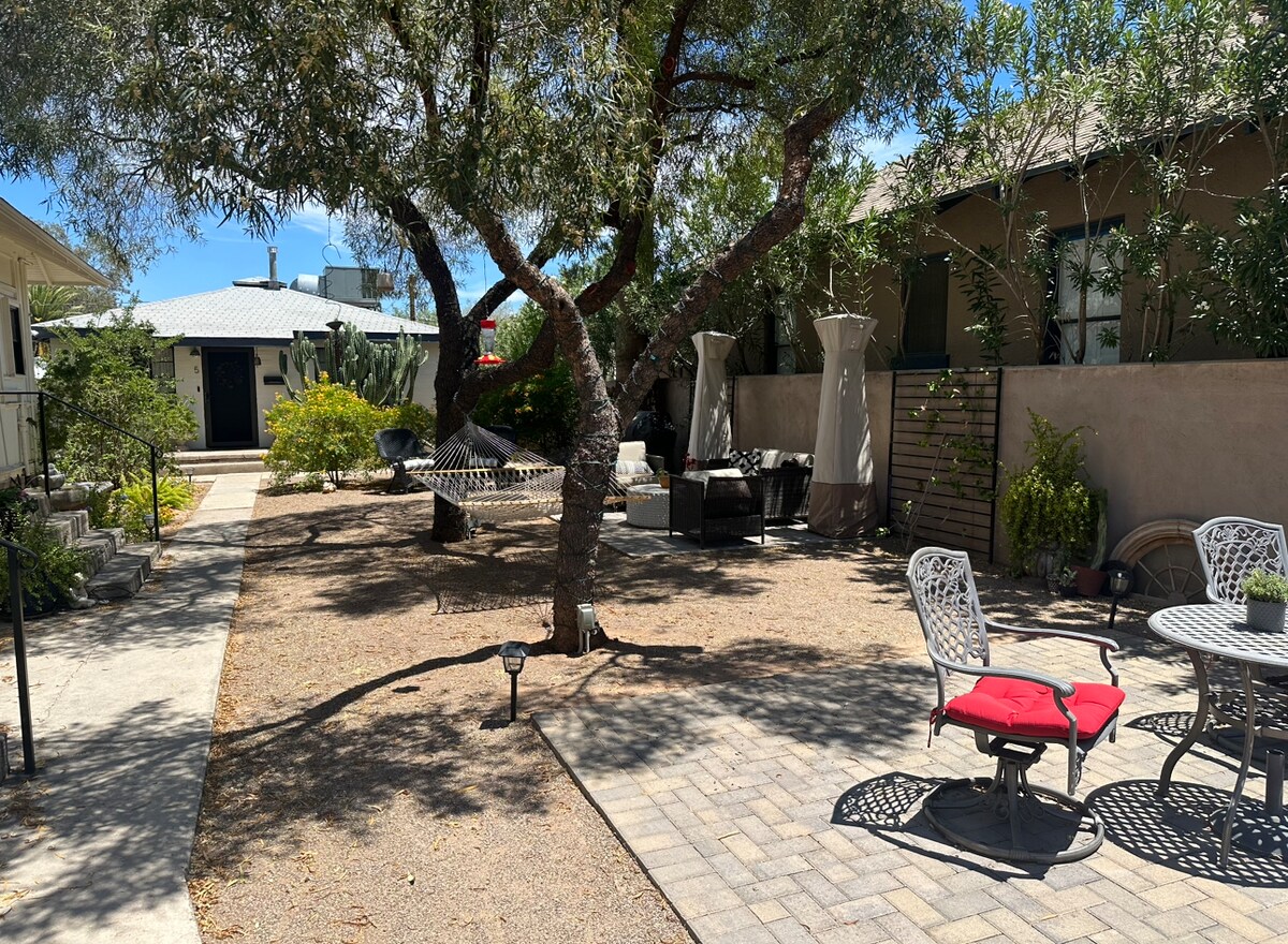 Kamra tas-sodda 2 sabiħa fil-qalba tal-viċinat storiku tal-Università tal-Punent ta 'Tucson. Imxi jew irkeb il-karozza tat-triq moderna lejn UofA, 4th Ave, u ċ-ċentru tal-belt. Rinnovat riċentament bl-arja ċentrali u internet b' veloċità għolja. Nadif u komdu.