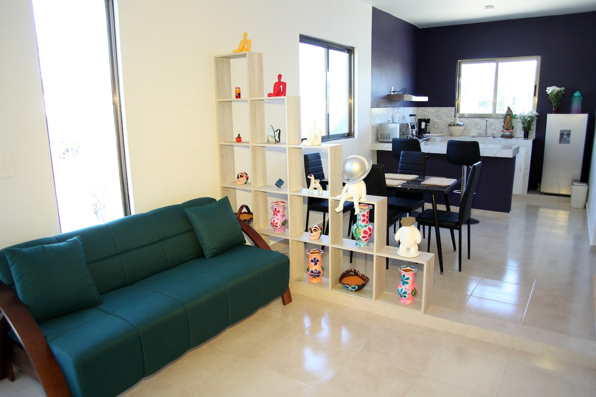 Irrilassa mal-familja kollha f' din id-dar fejn il-kwiet jista' jieħu n-nifs. Żomm il-konnessjoni l-ħin kollu mal-wifi f' kull rokna tal-bini. U l-aħjar ħaġa hija li tista' tilħaq kullimkien fiż-żona fl-iqsar żmien possibbli grazzi għall-post tajjeb tagħha, peress li għandna aċċess għat-toroq ewlenin tal-belt. Aħna qegħdin qrib l-isptarijiet u l-iskejjel ewlenin ġewwa u madwar Tula de Allende, u l-iktar ħaġa importanti mingħajr traffiku. Inti tiftaħ!!!