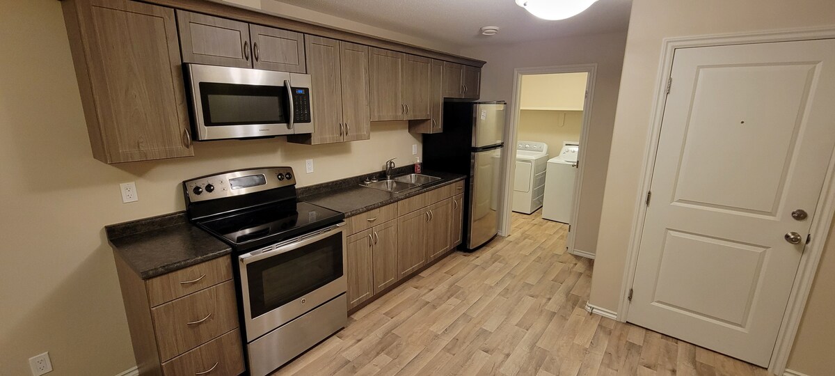 Suite f'post ċentrali fuq in-naħa ta' wara tat-Triq Prinċipali, Esterhazy. 2 kmamar tas-sodda, it-tnejn b'sododod Queen u l-lożor kollha pprovduti. Kċina mgħammra, borom/taġnijiet, platti, microwave, magni tal-kafè. Kamra tal-banju b'4 biċċiet b'paviment taċ-ċeramika, xugamani, shampoo/conditioner. Fil-ħwejjeġ tal-ħasil tas-suite, il-lożor tad-deterġent/dryer. Salott b' smart TV bi skrin ċatt, sufan, loveseat u fireplace, wifi bla ħlas.
