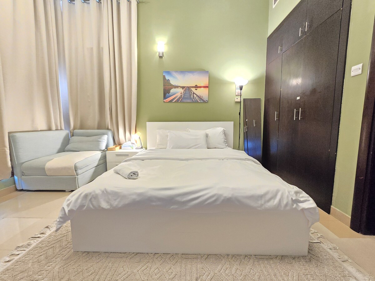 Merħba fl-istudio komdu tiegħek, ideali għal żjarat qosra jew fit-tul. Jinsab f' kumpless miżmum sew qrib iċ-Ċentru Dinji tal-Kummerċ u s-Swali tal-Wirjiet ta' Dubai. Inqas minn 14-il minuta (13 km) 'il bogħod mit-Terminali tal-Ajruport kollha. 7 minuti biss sa BurJuman Mall u 4 km sa Jumeirah Beach. Mixja ta' 9 minuti biss (650m) sal-Istazzjon tal-Metro Max • Gawdi minn wasliet flessibbli b' self checkin 24 siegħa kuljum permezz ta' lockbox. Ideali għal vjaġġaturi waħedhom, koppji jew klijenti tan-negozju li qed ifittxu konvenjenza u kumdità.