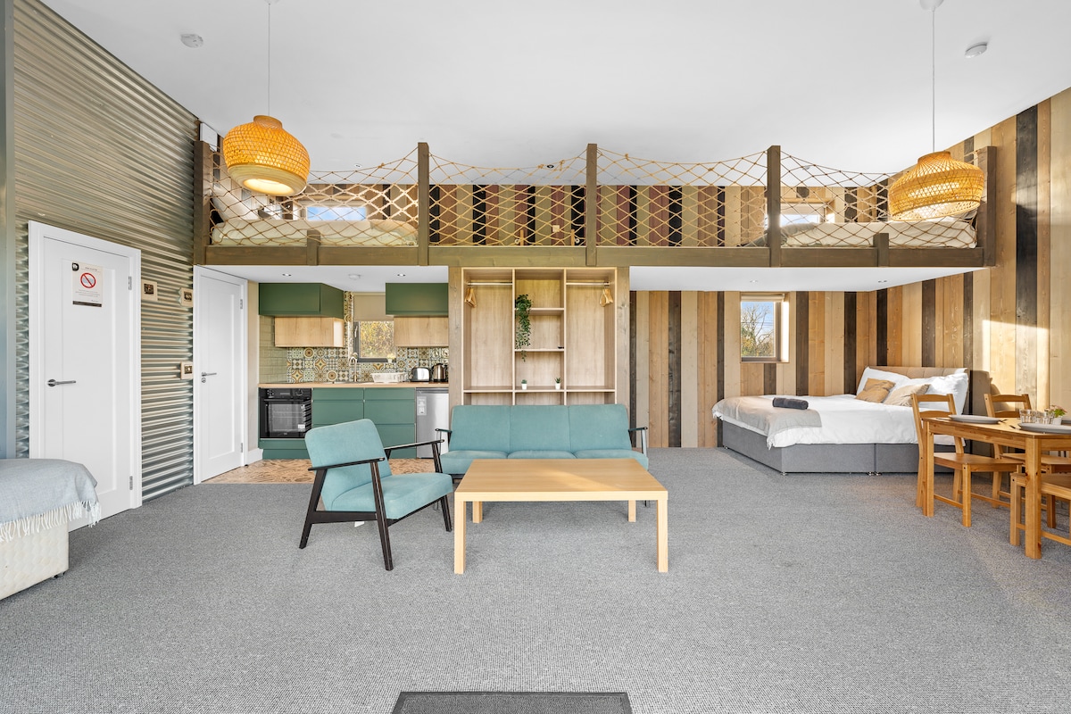 Kabina tal-log tal-istudio mibnija ġdida li tinsab fiċ-ċentru, mixja ta '10 minuti biss mit-triq ewlenija ta' Greystones, l-istazzjon TAD-DART u ż-żona tal-marina/port. Il-kabina tagħna għandha sodda ġdida fjamanta u komda ta' 5 piedi b' bażi tal-injam, kamra tal-banju b' doċċa tal-elettriku u TV b' skrin ċatt kbir. Jinsabu fl-ispazju tal-ġnien ta 'wara tagħna f' viċinat residenzjali kwiet. Il-kabina għandha daħla billi tuża passaġġ tal-ġenb. Hemm 3 passi 'l fuq sal-kabina peress li dan ma jgħoddx għall-viżitaturi bi problemi ta' mobbiltà