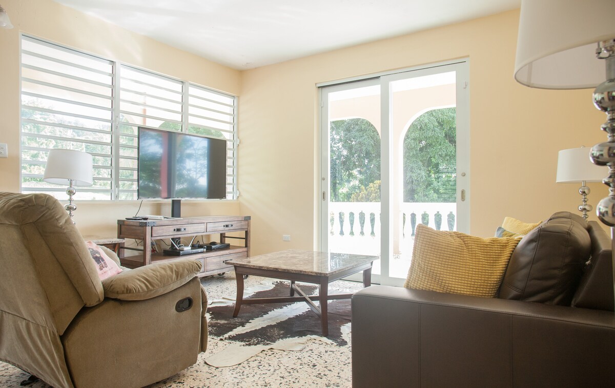 Idħol fl-oażi tropikali 3BR 2BA f' Naguabo piktoreska. Hija twiegħed li tirrilassa ftit minuti 'l bogħod minn Punta Santiago Beach, Malecon, Luquillo u laneċ, filwaqt li tkun inqas minn siegħa' l bogħod mill-attrazzjonijiet eċċitanti ta' San Juan. Id-disinn uniku, il-privat fuq barra u lista ta' kumditajiet rikki se jħalluk moħħok mistrieħ. ✔ 3 BRs komdi Għajxien b' Disinn ✔ Miftuħ ✔ Kċina Sħiħa ✔ Bitħa (Hot Tub, Mural Kulur, Lounges, Hammocks, BBQ) ✔ Spazju għall-ħidma ✔ Smart TV ✔ Wi-Fi ✔ Parkeġġ Ara iktar hawn taħt!