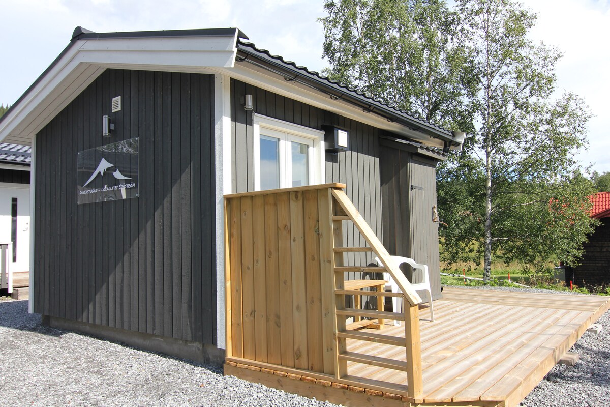Mini dar komda fl-aqwa post ċentrali ġewwa Duved. Kamra waħda b' alcove tal-irqad, 2 sodod, 2 minuti għal kollox! L-eqreb ġar huwa l-lift tal-iskijjar Byliften — l-aħjar post Ski-In u Ski-Out! Id-dar żgħira għandha dak kollu li teħtieġ: sodda wiesgħa 120 ċm b' sodda ta' 90 ċm fuqha, kċina mgħammra b' kollox għal tnejn, TV, WiFi, kamra tal-banju bil-madum b' doċċa u tisħin ta' taħt l-art. Ħitan bojod u art tal-parkè tal-ballut. Fuq barra hemm terrazzin żgħir li jħares lejn in-Nofsinhar b' mejda u siġġijiet. Aċċess għal grill.