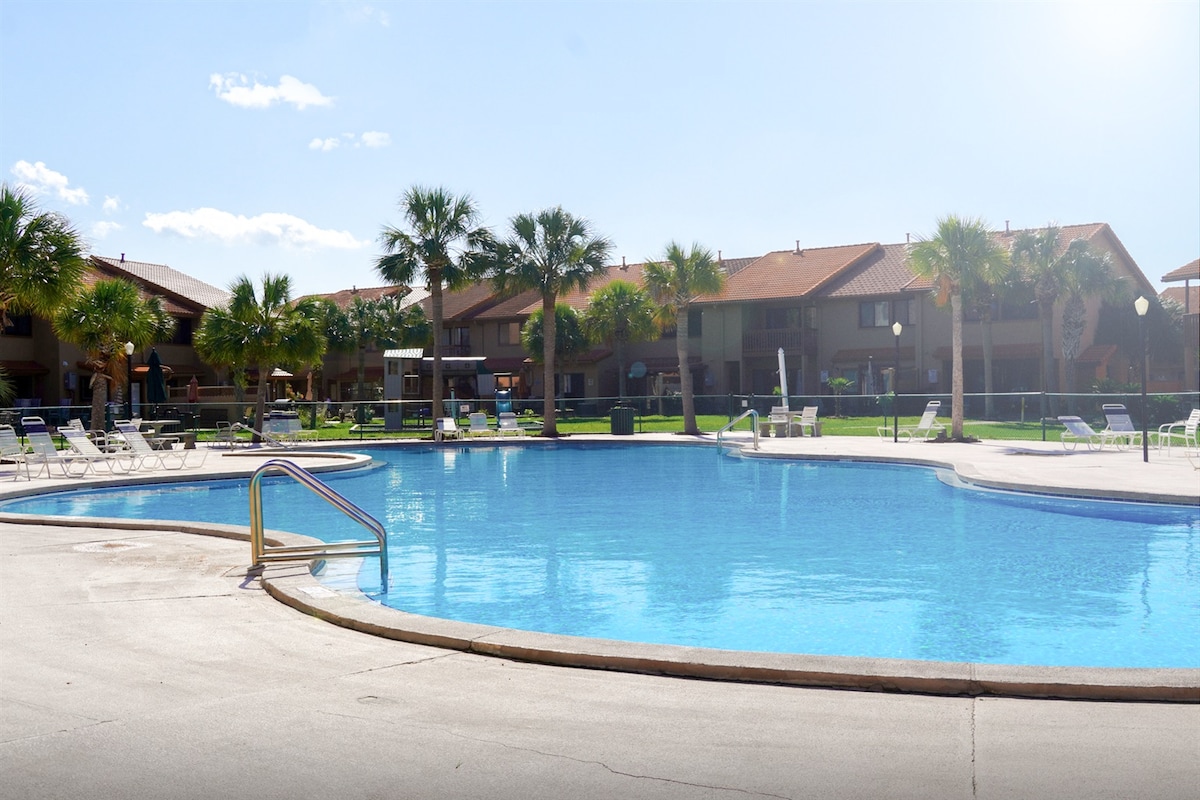 Mermaid' s Den - Spacious Beach Resort huwa appartament li jinsab fl-ewwel sular tal-Edgewater Beach Resort Villas f' PCB mill-isbaħ. Tista' timxi lejn it-Torri tal-Bajja b' diversi kumditajiet fosthom pixxini, hot tubs, ikel u bars. Mixja qasira ta' 3 minuti fuq mogħdija privata se twassalk għall-bajja sabiħa. Ġib lill-familja kollha f' dan il-conddo mdawwal, arjuż u spazjuż biex tirrilassa u tgawdi mill-kumditajiet kollha offruti fl-ispazju tar-resort. Ideali għal vaganza tal-familja!
