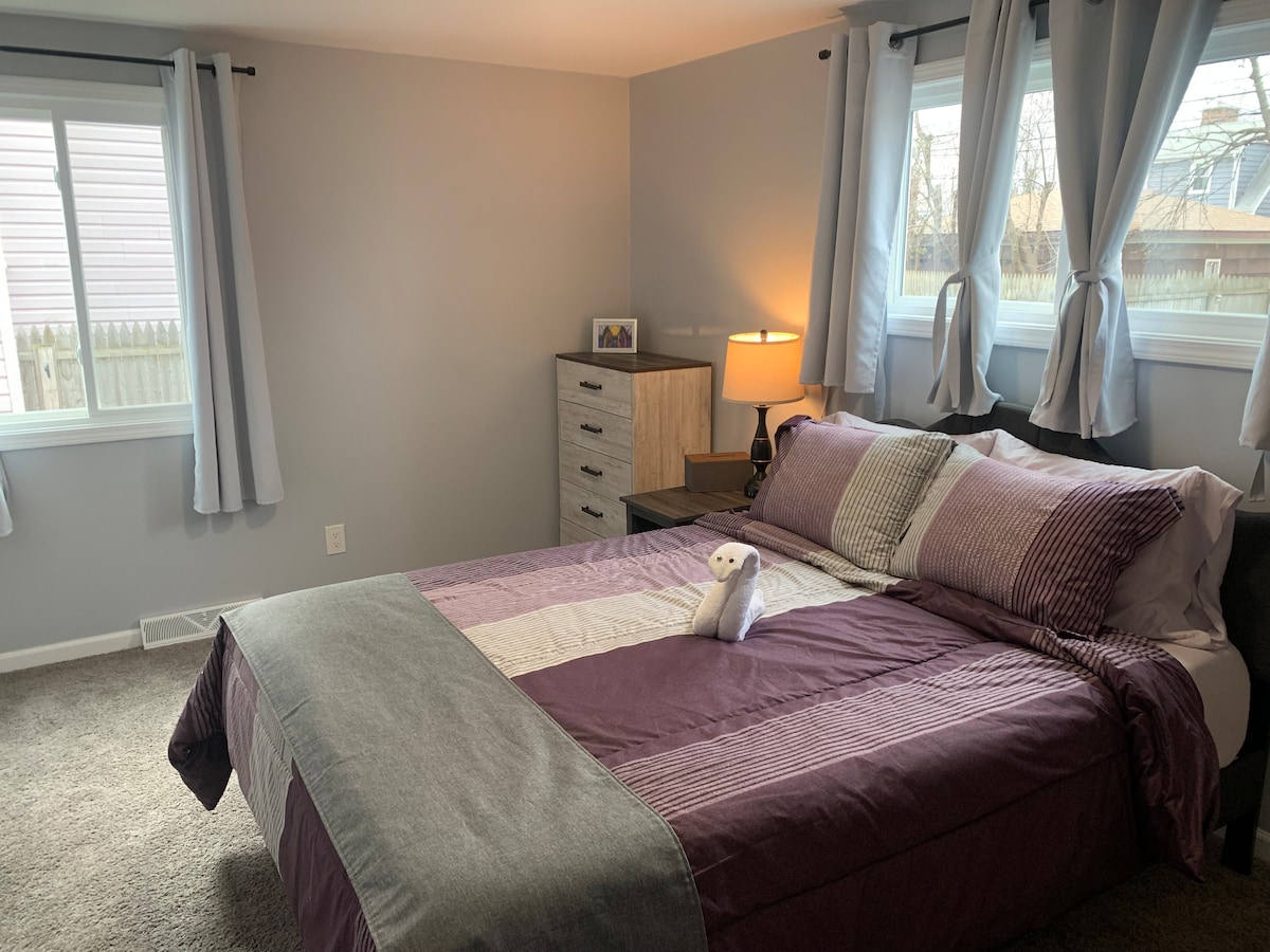 Merħba f'Oehman Home Skopri l-kumdità fid-dar sabiħa u kennija tagħna bi 3 kmamar tas-sodda u 1.5 kamra tal-banju li tilqa' sa 6 persuni. Jinsab biss 30 minuta 'l bogħod minn Majestic Niagara Falls, 18-il minuta 'l bogħod minn HighMark Bills Stadium, 7 minuti 'l bogħod mill-Ajruport, 13-il minuta 'l bogħod minn UB south / north, u biss ftit minuti 'l bogħod minn supermarket, ristorant u Walden Mall. Kemm jekk qed tivvjaġġa biex tistrieħ, biex iżżur il-kulleġġ jew biex tiggradwa, biex tara logħba ta' Bills jew biex iżżur il-Falls. Din id-dar hija ideali għall-familji u l-gruppi.