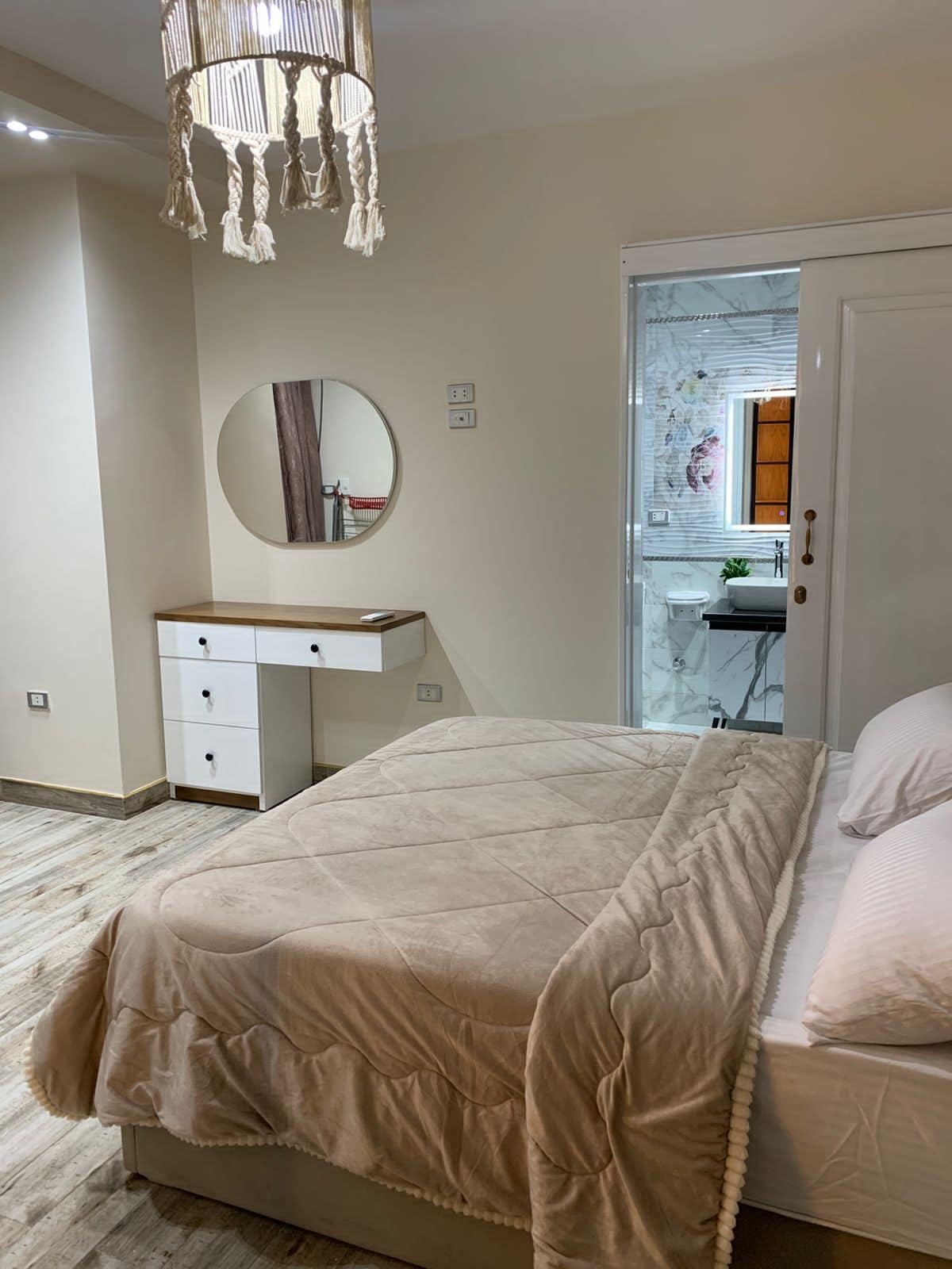 Il-familja tiegħek se tkun viċin ta' kollox meta toqgħod f' dan il-post li jinsab fiċ-ċentru. U l-viżitatur tiegħek ippermetta fi kwalunkwe ħin , L-appartament eleganti ħafna u uniku , stmat li huwa appartament f' lukanda u post romantiku b' Jacuzzi privat fil-kamra u jgawdi l-aħjar veduta tax-xemx u d-divertiment tal-maġġoranza tal-postijiet famużi fl-Eġittu . Veduta tal-Muntanji fil-qrib u l-Kajr il-ġdid.