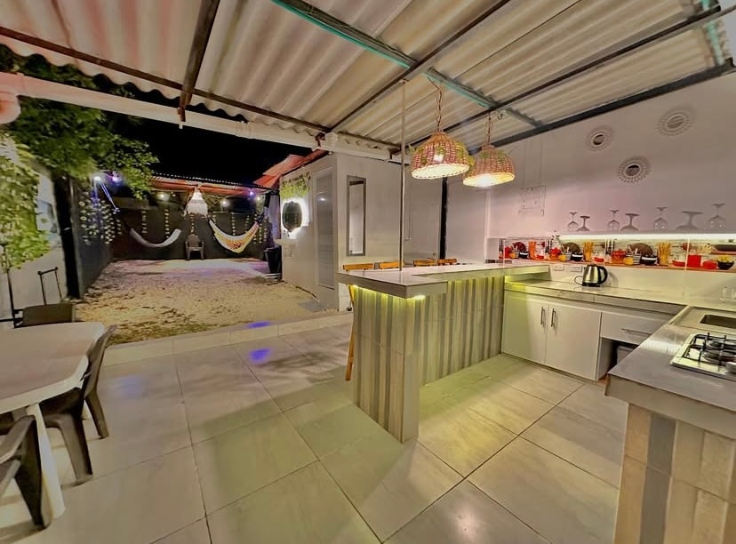 This rustic house with a Caribbean view is perfect for families or groups of friends. Just 7 minutes from Tolú’s main square and 5 minutes from Playa El Francés. Spaces include: – A tank-style pool overlooking the sea – Outdoor dining area, beach chairs, hammocks, and a large kiosk – 7 bedrooms with fans and A/C – Fully equipped kitchen – Capacity for up to 16 guests – Free Wi-Fi and basic cleaning service included (does not cover cooking or laundry) – 24/7 on-site caretaker