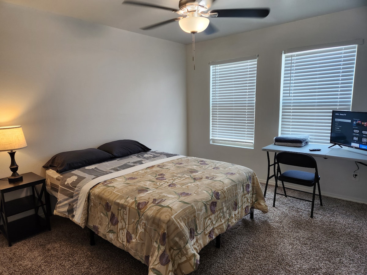 Townhouse sabiħa u komda fuq in-Naħa tal-Punent ta 'El Paso. Aċċess faċli għal I-10. Ħafna ħwienet u ikla fina jew fast food. Din id-dar tinsab f' viċinat kwiet, b' mod komdu toqgħod 6 persuni imma tista' takkomoda sa 8 persuni, fil-kamra tas-sodda ewlenija spazjuża tagħha, saqqu ġdid u bunk bed b' ħruġ 'il barra. Kompletament mgħammar, WIFI b 'xejn, għandu wkoll refriġerazzjoni u post tan-nar. Aħna noffru ambjent nadif wara l-proċess ta 'Tindif Imtejjeb b' 5 passi ta' Airbnb li huwa bbażat fuq il-gwida għat-tindif ta' Airbnb.