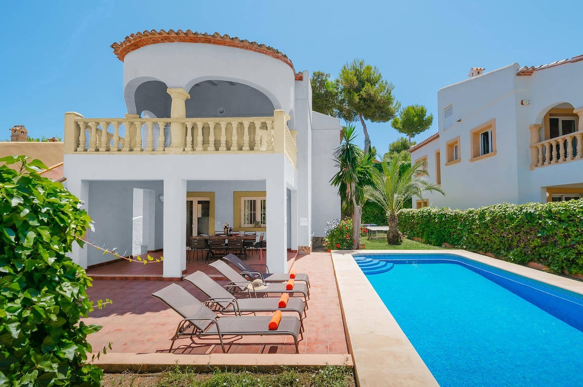"Villa Sunset Moraira" - Gawdi minn jiem tal-ħolm f' villa modernizzata tal-istil Spanjol għal mhux iktar minn 8 klijenti. Punti ewlenin: - pixxina privata (bit-tisħin) - żona kbira fuq barra b' veduti li jħarsu lejn in-Nofsinhar - Kċina fuq barra b' barbecue - arja kkundizzjonata, fannijiet u tisħin fil-kmamar kollha - għamara ta' kwalità għolja - 3 ikmamar tas-sodda b' sodod bil-molla tal-kaxxa - 2 kmamar tal-banju moderni b' doċċa u banju - kċina mgħammra kompletament - Wi-Fi veloċi - Smart TV - post kwiet, qrib il-bajja ☆ "Il-villa ta' Clio hija ġojjell assolut!"