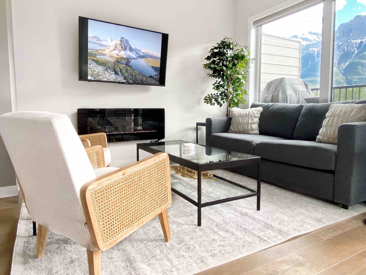 Din is-suite lussuża u spazjuża tal-kamra tas-sodda b 'veduti impressjonanti tal-muntanji se tħallik tħossok rilassat/a u b' punt tat-tluq perfett għall-avventuri fuq il-muntanji. L-ispazju fejn tgħix għandu twieqi kbar b 'xenarji mill-isbaħ, pjan ta' sular miftuħ, għamara lussuża u fireplace komdu. Hija mixja xenika ta '5 minuti lejn ir-ristoranti u x-xiri fiċ-ċentru, mixja ta' 5 minuti lejn għadd kbir ta 'mogħdijiet għar-roti u l-mixjiet fit-tul, u sewqan ta' 15-il minuta lejn il-Park Nazzjonali ta 'Banff.