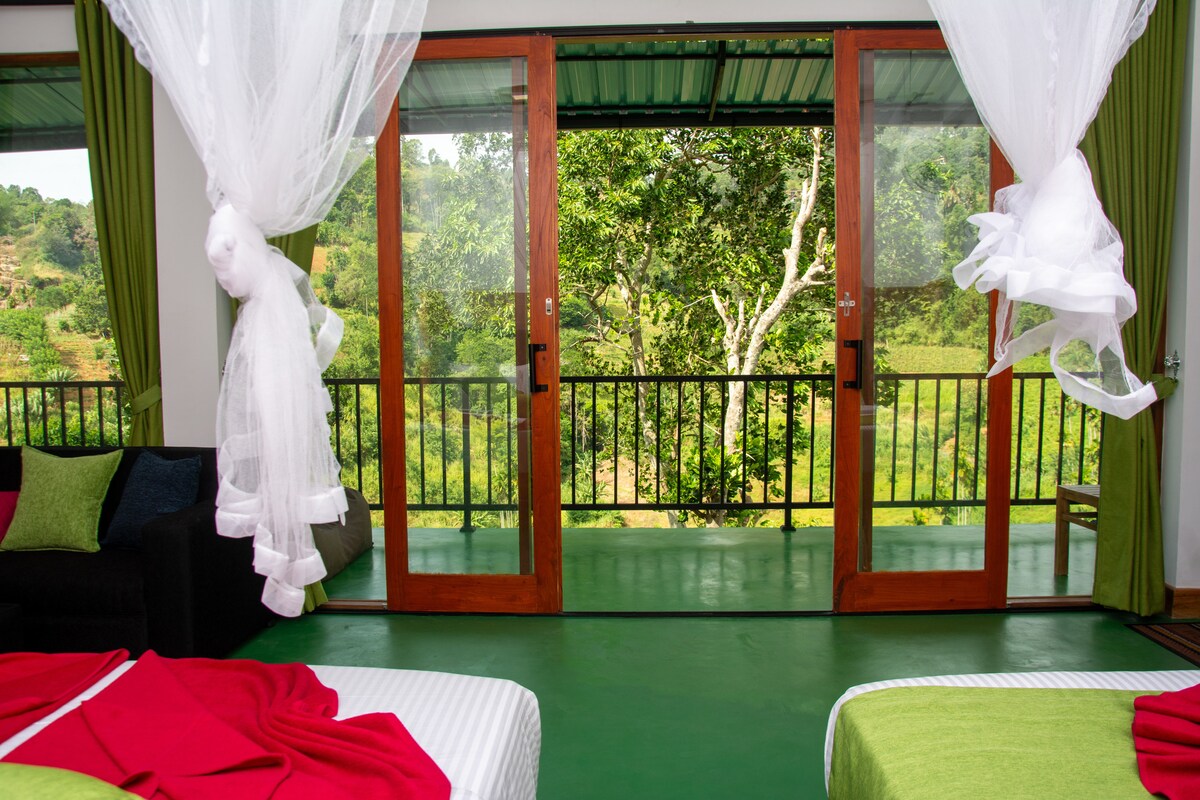 Merħba f' Ella panorama villa. Kamra sabiħa u Spazjuża qed tistenniek! . Il-kamra tal-familja toffri 2 sodod kbar ħafna, bibien tal-ħġieġ kompletament temperd, arja kkundizzjonata,Friġġ, Kitla Elettrika u Te u kumditajiet tal-kafè, daħla privata, terrazzin tal-injam b' veduta panoramika tal-muntanji kif ukoll kamra tal-banju privata b' doċċa. U wkoll 10 minuti 'l bogħod mill-pont b' disa' arkati. Aħna nipprovdu parkeġġ bla ħlas u faċilitajiet tal-Wifi b' veloċità għolja.