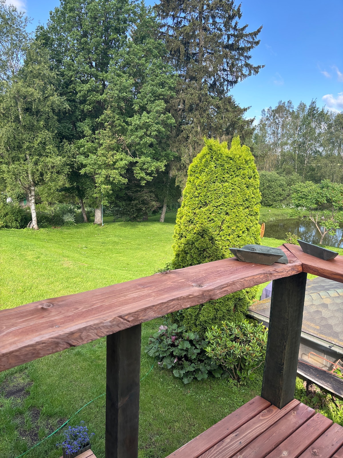Opportunità biex tistrieħ mal-familja u l-pets f' ambjent naturali qrib il-foresta. Televixin fil-kamra, sodda b' żewġ sits u sufan li jintewa. Cooker tal-induzzjoni b' żewġ sits, friġġ u magna tal-ħasil fil-kċina. Lagi u mogħdijiet għall-mixjiet fit-tul fil-qrib. Fuq ix-xatt tal-għadira fil-bitħa, post fejn tista' tiggrillja u tiekol. Sawna u hot tub bit-tisħin ta' € 50.