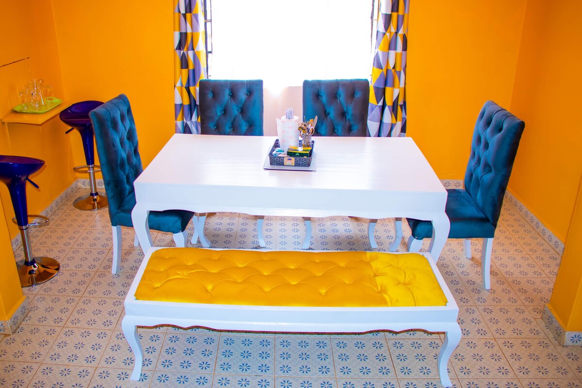 Aħna ninsabu f 'Blue Valley Estate f' Appartament kwiet u seren 5 minuti mixi 'l bogħod mill-belt ta' Embu. 100M mil-lounge ta 'Jambox, Il-lukanda rjali ta' Mini inn u d-dar tal-kura tal-Libertà. Parkeġġ bla ħlas fuq il-post, Wi-fi veloċi bla ħlas, servizz ta 'żamma tad-dar fuq talba. Ordni 24 siegħa kuljum /sorpriżi ta' qabel il-kejk inklużi u dan se jseħħ. Viċinat amikevoli fil-qalba tal-belt ta 'Embu.