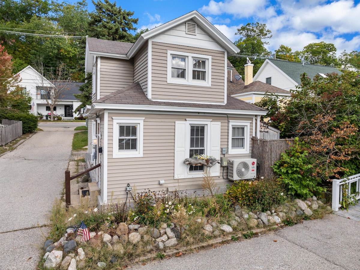 Il-Bieb li Jmiss tad-Dar huwa cottage modern vintage-chic fil-qalba ta 'Harbor Springs. Iddisinjat b' mod tajjeb il-ħin kollu, perfett biex toqgħod fi jew biex tkun il-bażi tad-dar tiegħek għal attivitajiet lokali bla tmiem, ħafna mingħajr ma tidħol fil-karozza tiegħek. 8 minuti mixi lejn ix-xatt, ristoranti u xiri. Minuti minn hiking, rota, bajjiet. 10 minuti sewqan sa resorts tal-iskijjar/golf. Imblukkar lura mill-bluff, qrib il-ħajja tal-belt tar-resort okkupata tagħna iżda separata biżżejjed għall-paċi u l-kwiet u l-ħsejjes tan-natura.