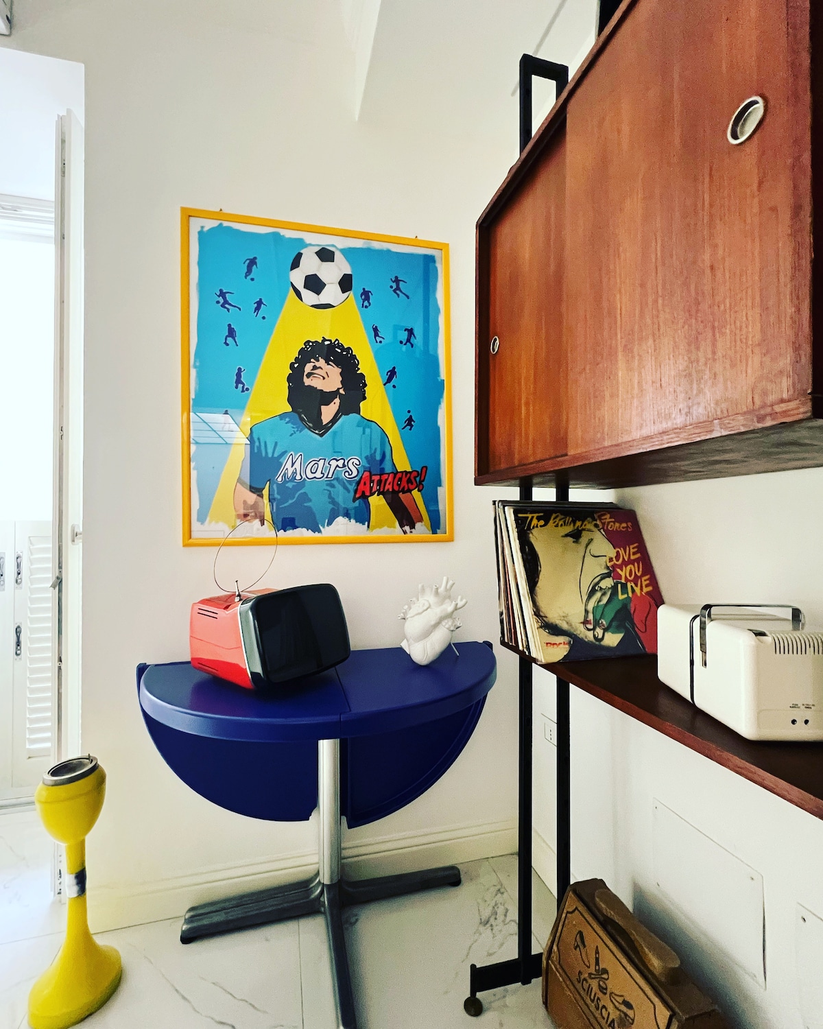 Appartament ħelu fil-belt ta' Napli, fiż-żona ta' Petraio (turġien antiki), li jinsab f' post kwiet fuq l-art ta' fuq, mingħajr lift, b' terrazzin b' veduta tal-baħar mill-isbaħ fuq il-Golf ta' Napli (mill-vulkan Vesuvius, sal-gżira ta' Capri, sal-għolja ta' Posillipo). Post fejn toqgħod kbir u mdawwal b' sufanijiet u kċina majolika, mwejjed tal-ikel fuq ġewwa u mejda fuq barra fuq it-terrazzin b' veduta tal-golf. Żona tal-irqad 'il fuq b' kamra tas-sodda panoramika doppja, kamra tal-banju u żona ta' studju/rilassament.