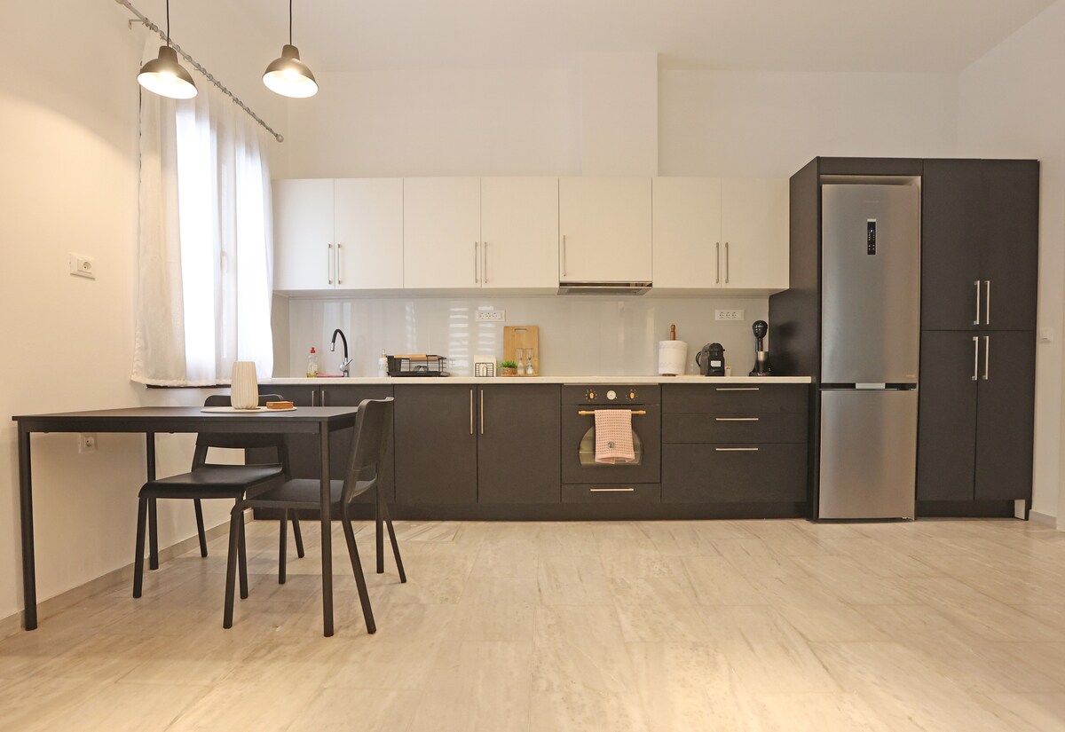 A beautiful, urban chic, 2nd floor apartment (without elevator), recently renovated, with a large terrace. Nastia's apartment is 15 minutes walk from the town center and the port. In 5 minutes you can visit the Industrial and the Hermoupolis Textile Museum. Around are also supermarkets, pharmacy, hospital, gym, bakery . It's ideal for remote workers as it is spacious with all the amenities and the equipment for every day life. Fast and free wifi ,a wonderful terrace for relax as also for work.