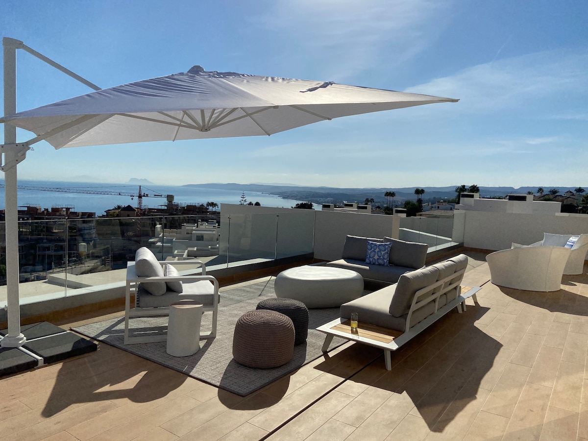 Penthouse rinnovata sabiħa, mgħammra b' għamara ġdida u li tinsab direttament qrib il-baħar. L-appartament jinsab eżatt qrib il-bajja b' parkeġġ taħtu. Il-mewġ jista' jidher u jinstema' mill-gallarija. Jinsabu f 'distanza ta' 10 minuti bil-mixi mill-belt antika affaxxinanti ta' Estepona, li għandha firxa ta' ristoranti u bars minn fejn tagħżel. Aċċess dirett għall-promenade ewlieni u li jinsab b 'mod konvenjenti ħdejn il-klabb Trocadero (b' pixxina u klabb fuq il-bajja) u l-Carrefour.