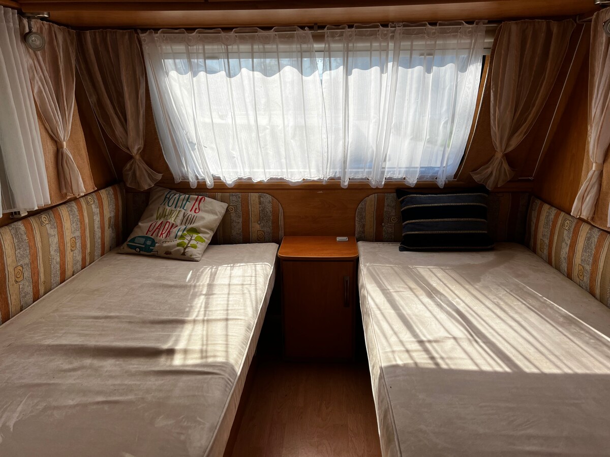 Karavan spazjuż f' ġnien privat qrib il-belt. Gawdi żjara komda qrib in-natura u qrib il-kumditajiet kollha fl-istess ħin. Il-karavan joqgħod 2(+2) adulti + 3 itfal f' bunk beds. Għandha tisħin ċentrali kif ukoll żona fejn toqgħod bilqiegħda fuq barra. Il-post huwa perfett għall-vjaġġaturi li huma interessati jaraw il-kapitali filwaqt li ma joqogħdux 'il bogħod.