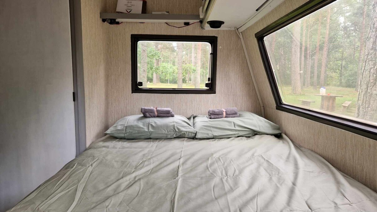 Din hija opportunità unika biex tikkampja f 'campervan ta' Chevrolet Vintage tal-1984. Ġiet restawrata u xi elementi moderni miżjuda għal dik il-kumdità żejda. 2 sodod kbar u sodda konvertibbli jagħtu biżżejjed spazju komdu għal 5 biex jorqdu f 'din il-karozza vapurizzata. Hija pparkjata fi ġnien privat f 'raħal żgħir fuq il-fruntiera ta' Tallinn. Għandek l-użu tal-ispazju tal-ġnien, kċina fuq barra u żona separata għas-sawna.